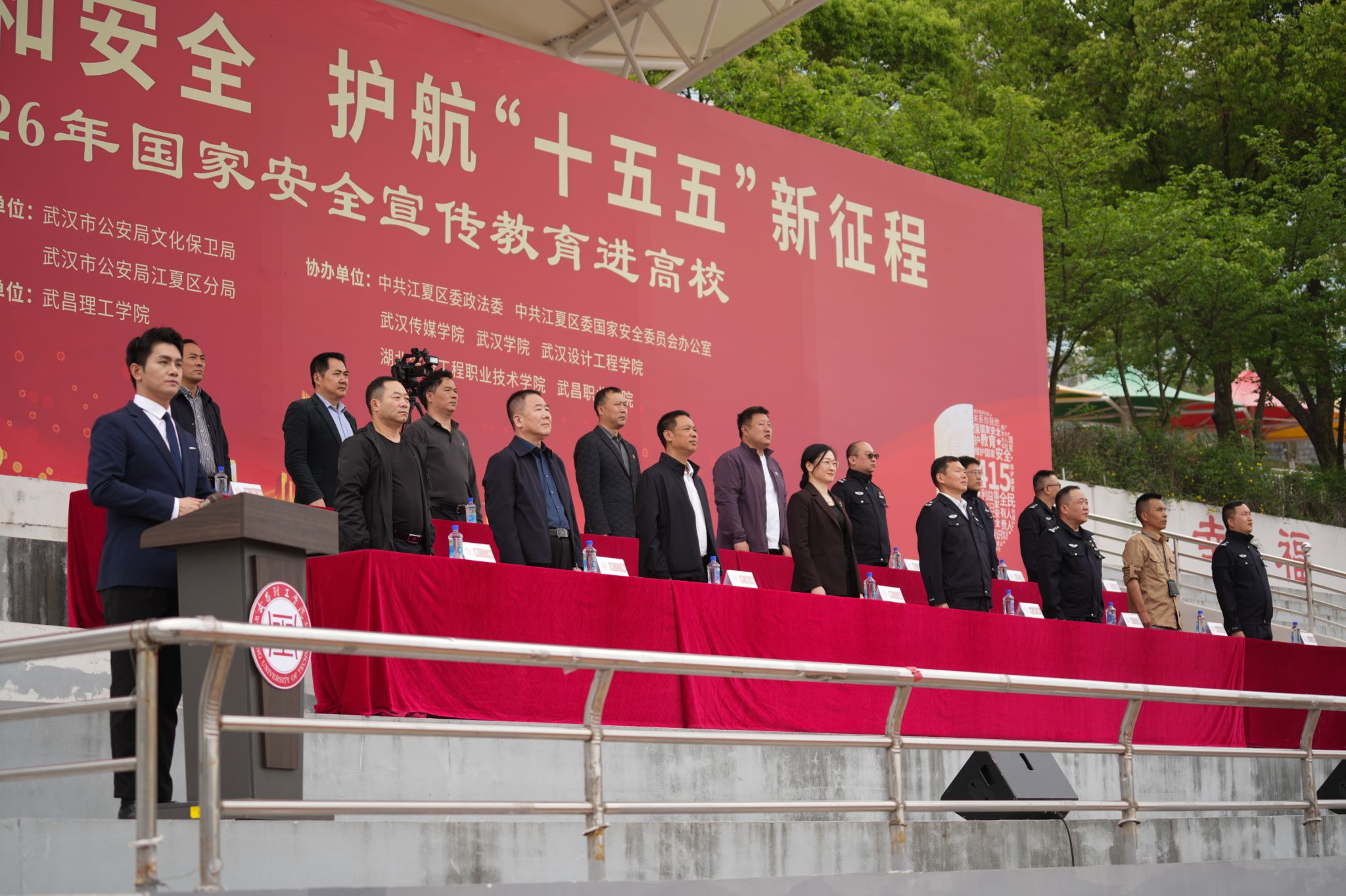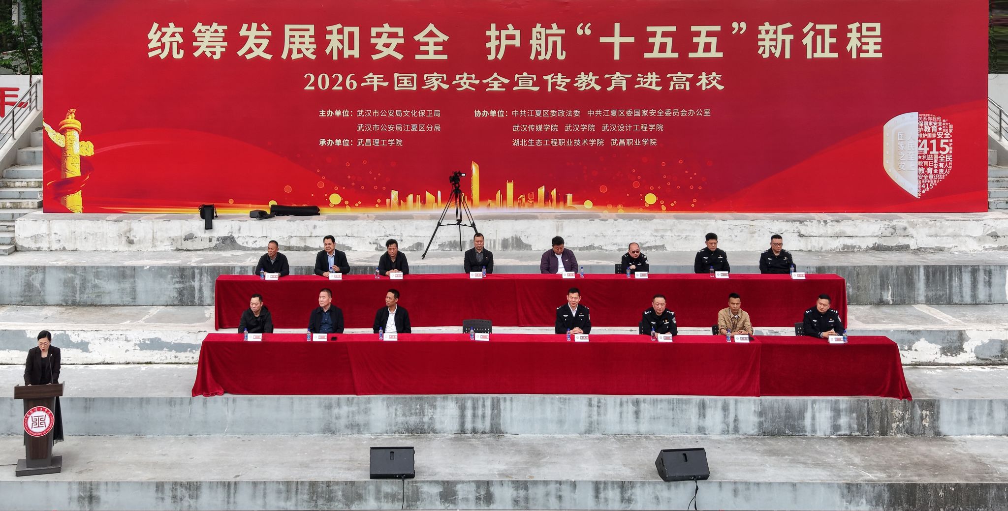 中南在线4月14日消息 (记者 周黎 大通社记者 何雨露 陈思妤 报道 摄影摄像中心记者 武兆颂 王一達 李泽凯 摄影)为深入推进高校国家安全宣传教育工作,切实提升青年学子国家安全意识和防范能力,4月13日,“统筹发展和安全 护航‘十五五’新征程”2026年国家安全宣传教育进高校活动在武昌理工学院运动场盛大举行。本次活动由武汉市公安局政治安全保卫支队、武汉市公安局江夏区分局联合主办,武昌理工学院承办,中共江夏区委国家安全委员会办公室、江夏区委政法委及武汉传媒学院、武汉学院、武汉设计工程学院、湖北生态工程职业技术学院、武昌职业学院等多所高校协助举办,凝聚多方力量筑牢高校国家安全防线。