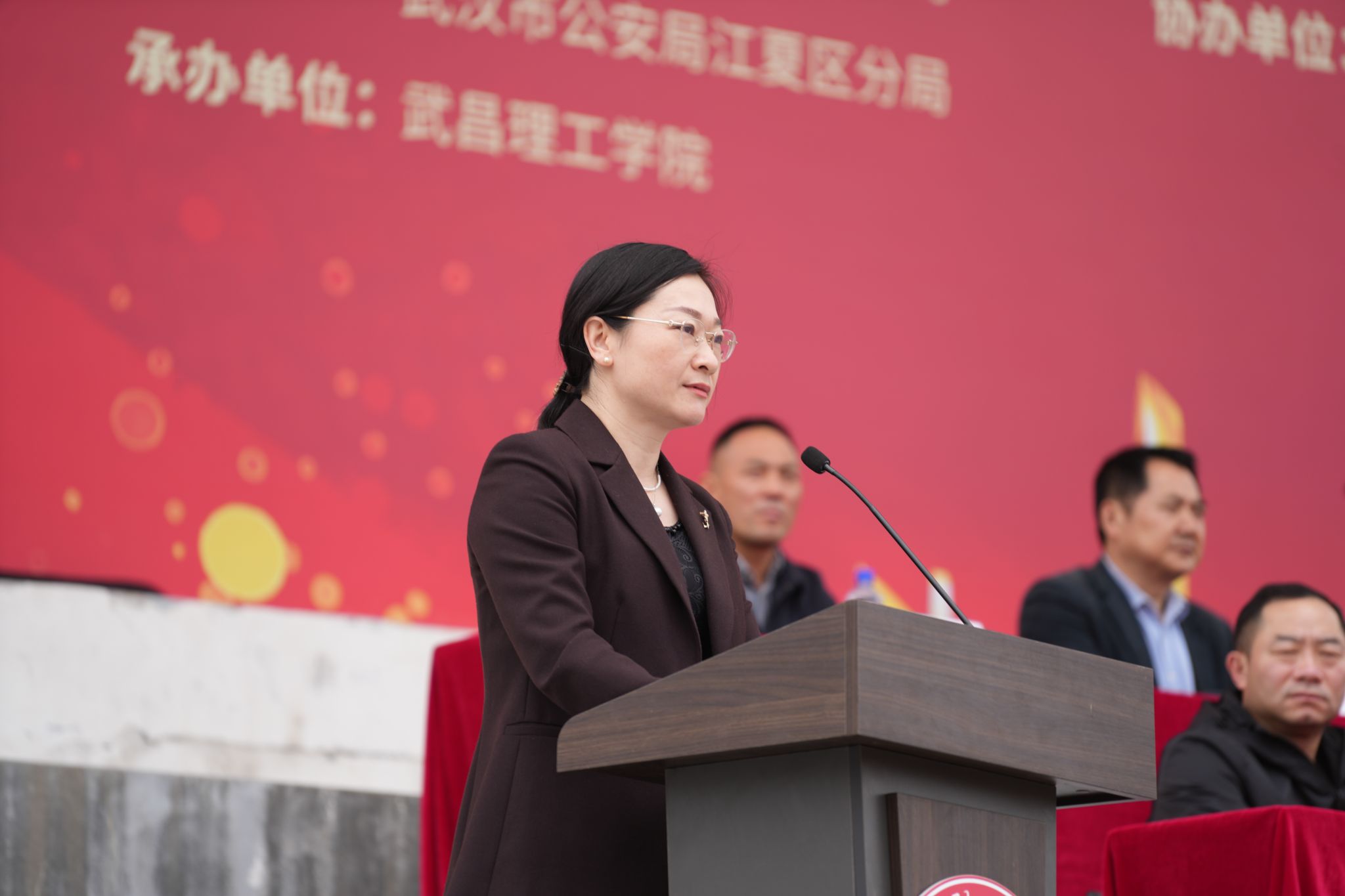 武汉市江夏区委政法委副书记尹文涛、江夏区委国家安全委员会办公室副主任付俊,武汉市公安局政治安全保卫支队大队长刘武强,江夏公安分局政保大队大队长吴鹏、刑侦大队教导员敖虎、治安大队教导员李峰、郑店检查站站长高珍贵,武昌理工学院党委副书记、副校长林娟教授,以及各协办单位有关领导嘉宾、两千余名学生代表出席活动,共同参与这场兼具教育性与实战性的国家安全宣传教育活动。