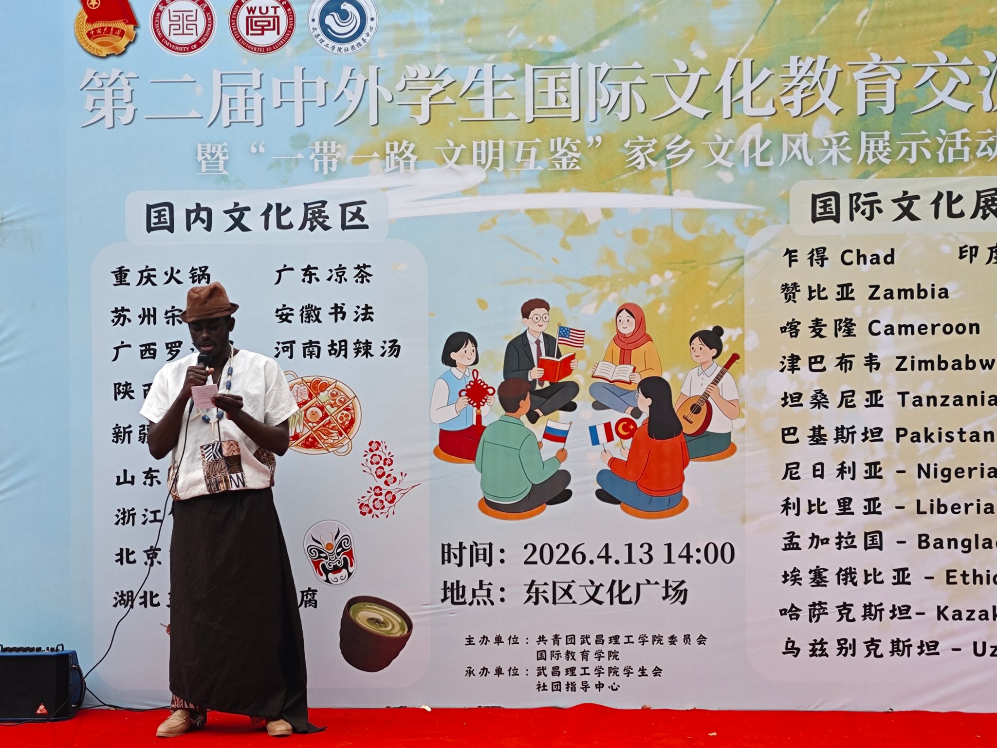 中南在线4月15日消息 (记者 周黎 报道 共青团武昌理工学院委员会 摄影)4月13日下午,武昌理工学院文化广场洋溢着欢声笑语,第二届中外学生国际文化交流展暨“一带一路,文明互鉴”家乡文化风采展示活动在这里隆重举行。来自来自五湖四海的中外学子齐聚一堂,用美食、技艺、歌舞和真诚对话,共同绘就了一幅文明交融、青春携行的生动画卷。