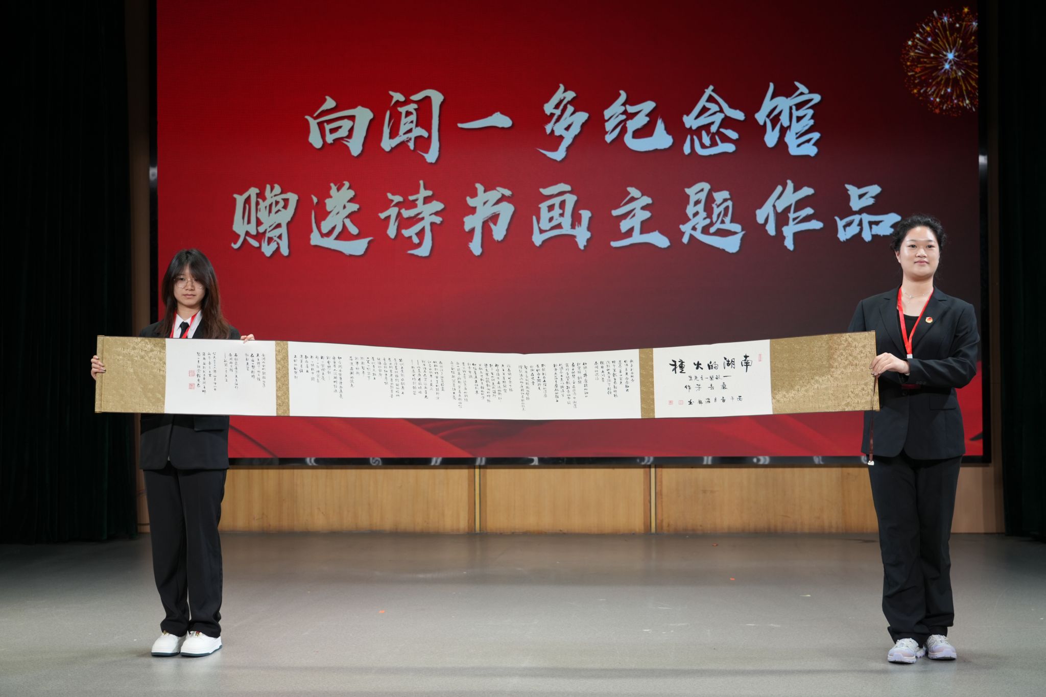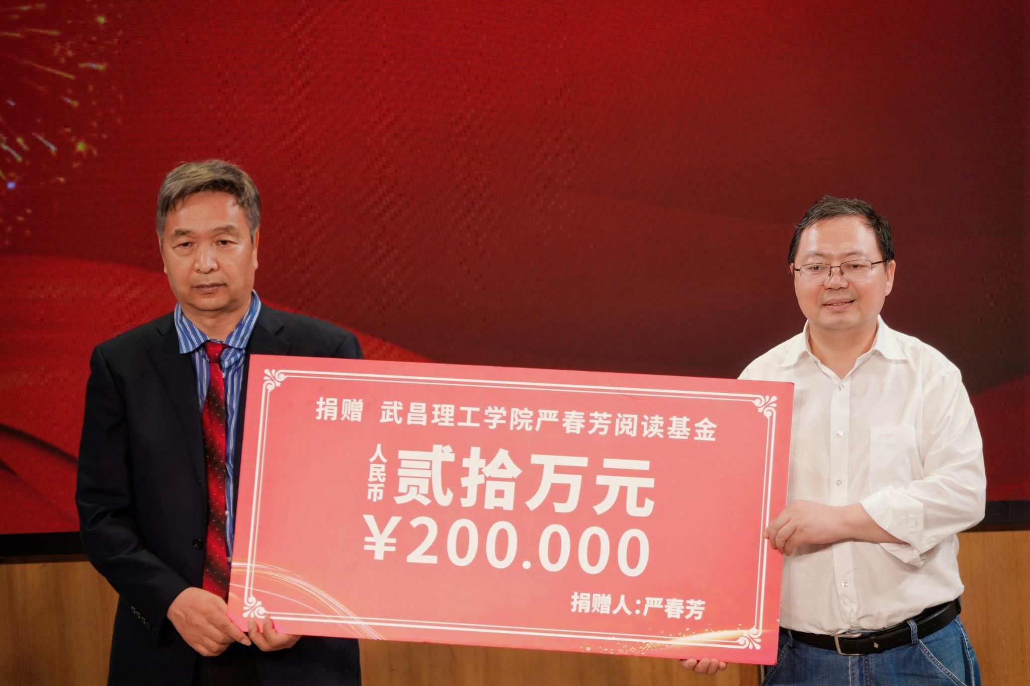 活动中,中国新文学学会向武昌理工学院授予“阅读基地”铜牌。组委会颁发优秀集体组织奖和个人组织奖。此外,多位诗人、书画家将创作的闻一多主题作品,赠予湖北省黄冈市浠水县闻一多纪念馆,以作珍藏与传承。诗人、作家严春芳向武昌理工学院捐赠20万元设立“严春芳阅读基金”,用于推进大学生阅读与朗诵工作。