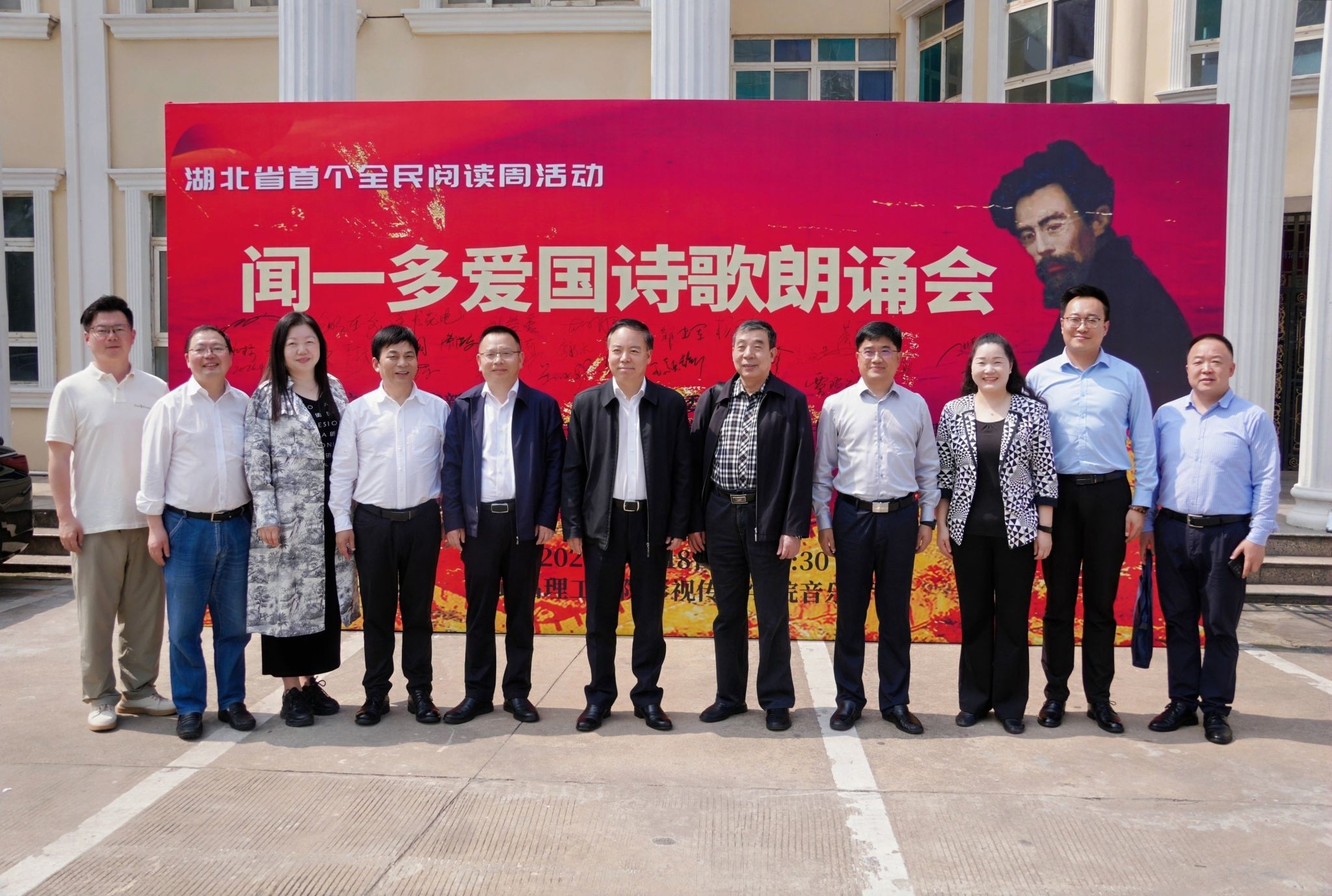 中南在线4月18日消息(大通社记者 袁婷 报道 摄影摄像中心 武兆颂 钟嘉仪 报道)4月18日下午,在湖北省首个“全民阅读周”浓郁的书香氛围中,闻一多爱国诗歌朗诵会在武昌理工学院影视传媒学院音乐厅隆重举行。本次活动由中国新文学学会、中国闻一多研究会、光明读书会、武昌理工学院、民盟武昌理工学院联合主办,武昌理工学院影视传媒学院、学工处、宣传处承办。湖北省人大常委会副主任、民盟湖北省委会主委杨云彦,武昌理工学院党委书记高建勋等领导,文学界专家学者、朗诵艺术家、闻一多后人及阅读爱好者等共聚一堂,重温经典,感悟家国情怀。