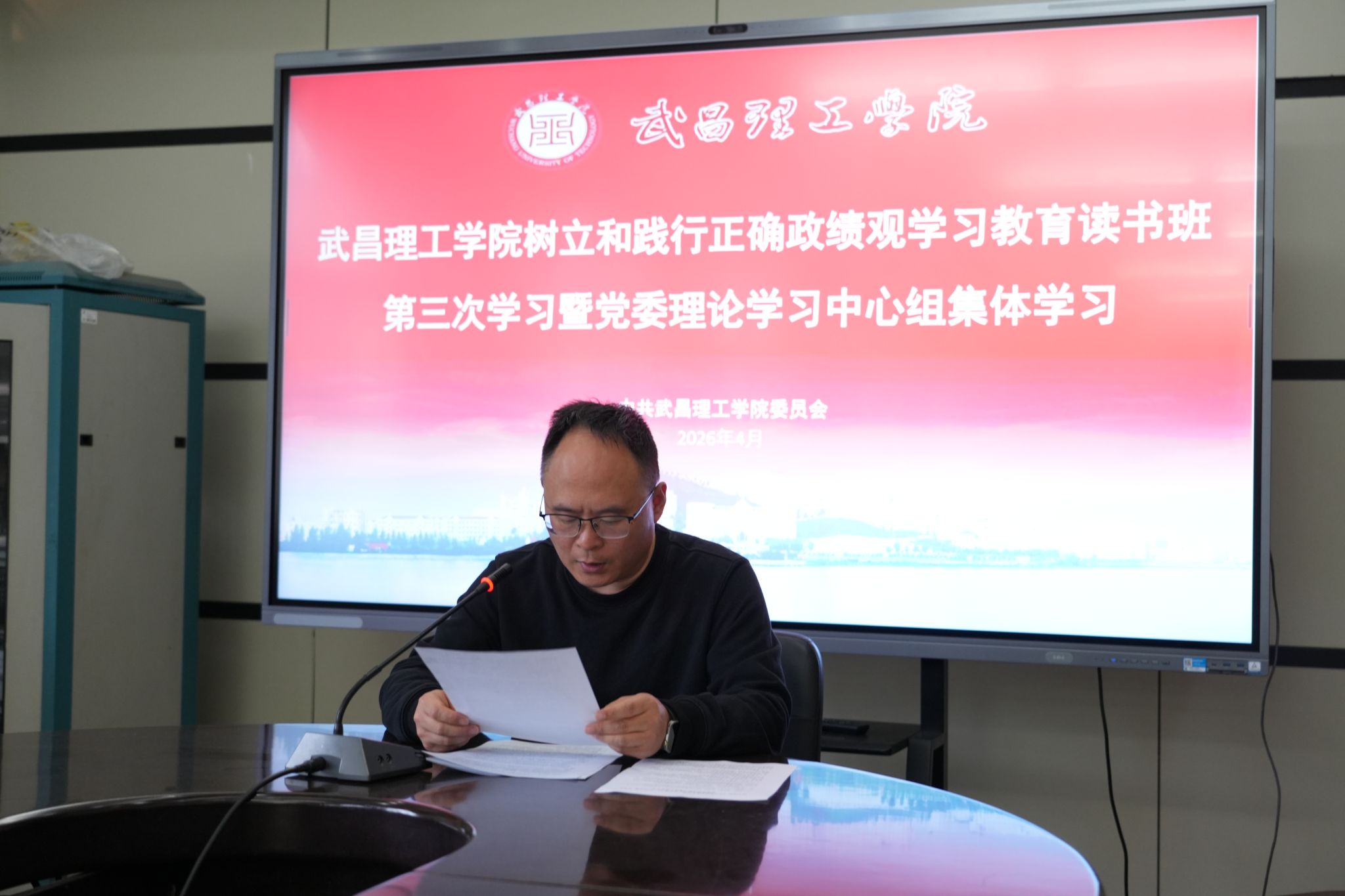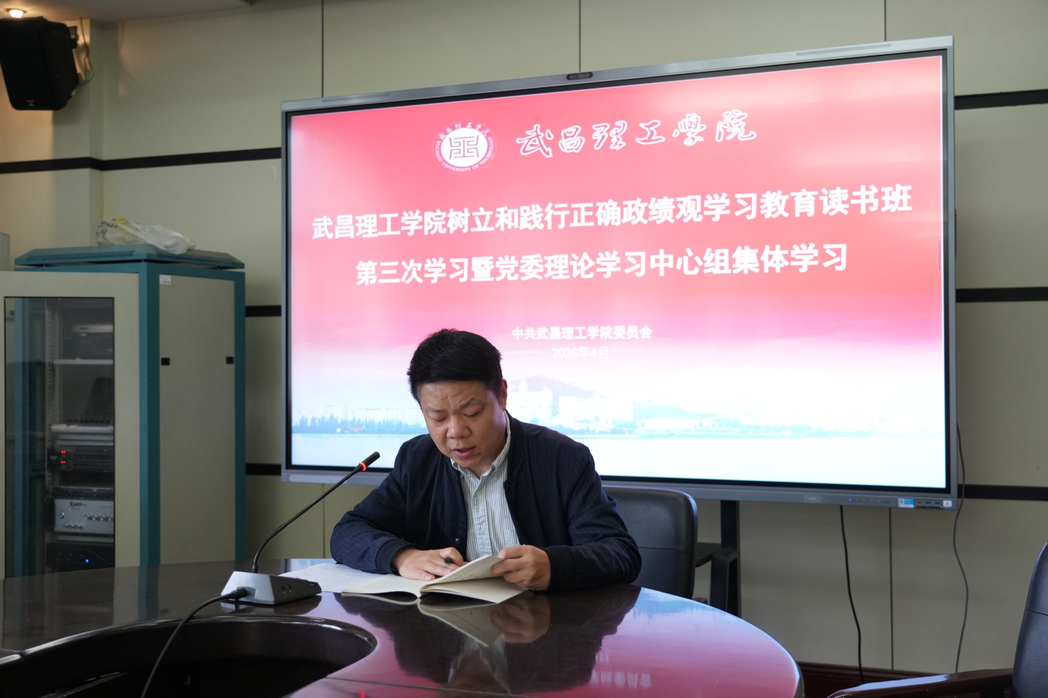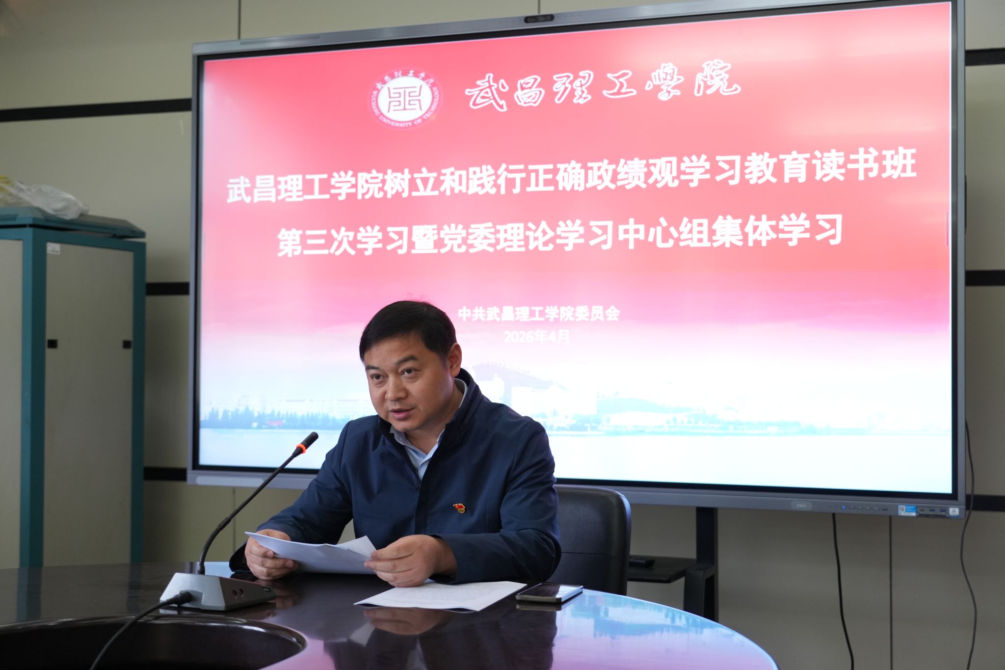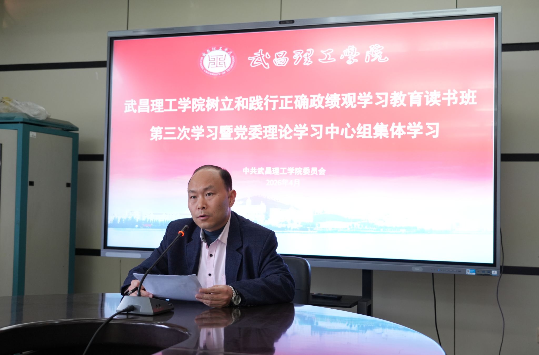 中南在线4月23日消息(记者 祝琳 报道)4月21日上午,武昌理工学院党委举行树立和践行正确政绩观学习教育读书班第三次学习暨党委理论学习中心组集体学习会。会议深入学习贯彻习近平总书记关于正确政绩观的重要论述,深入学习领会《关于加强党建带团建工作的意见》等文件精神,并围绕“树立和践行正确政绩观”开展交流研讨。校党委书记高建勋主持会议并讲话,党委理论学习中心组成员结合工作实际逐一发言,直属机关第一党支部相关同志列席学习。