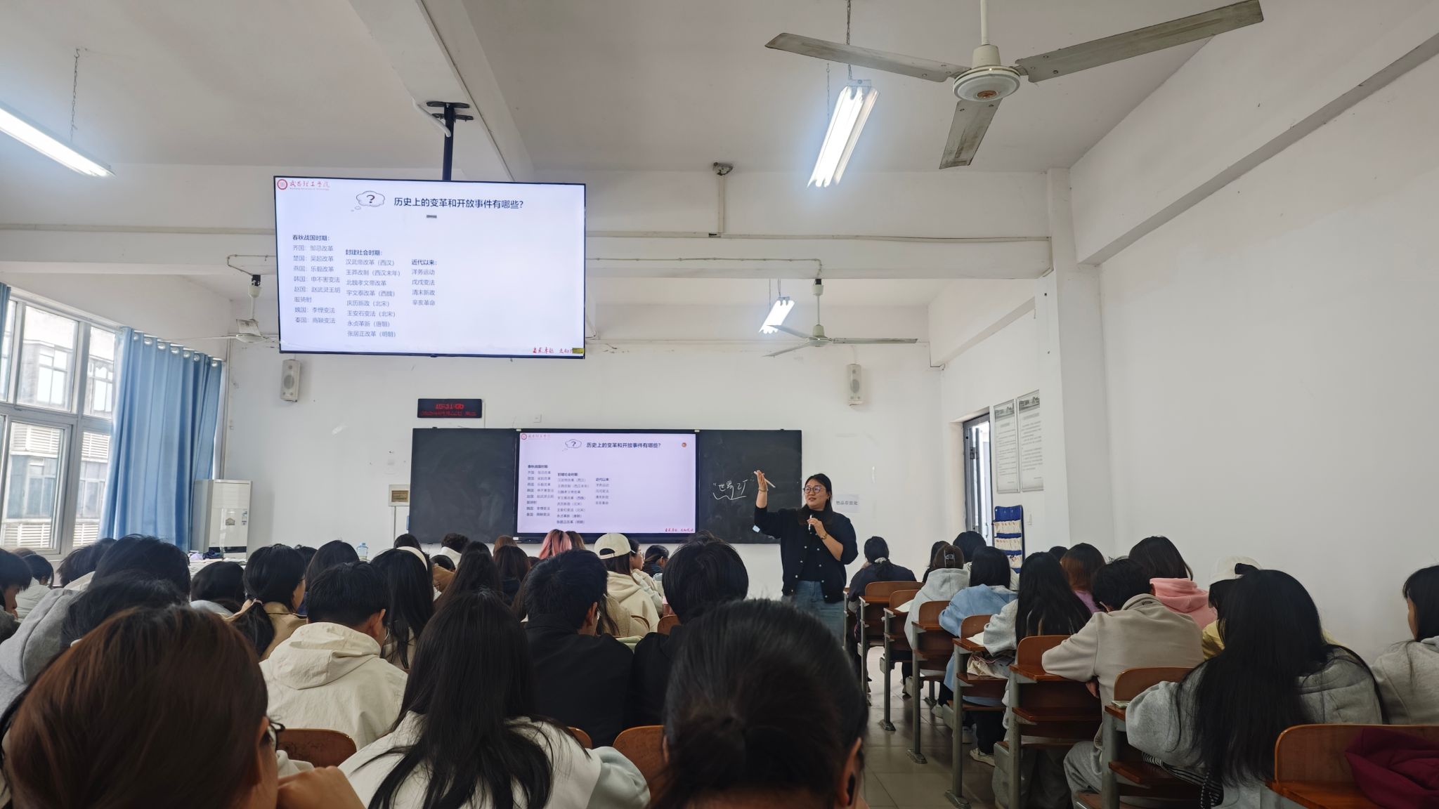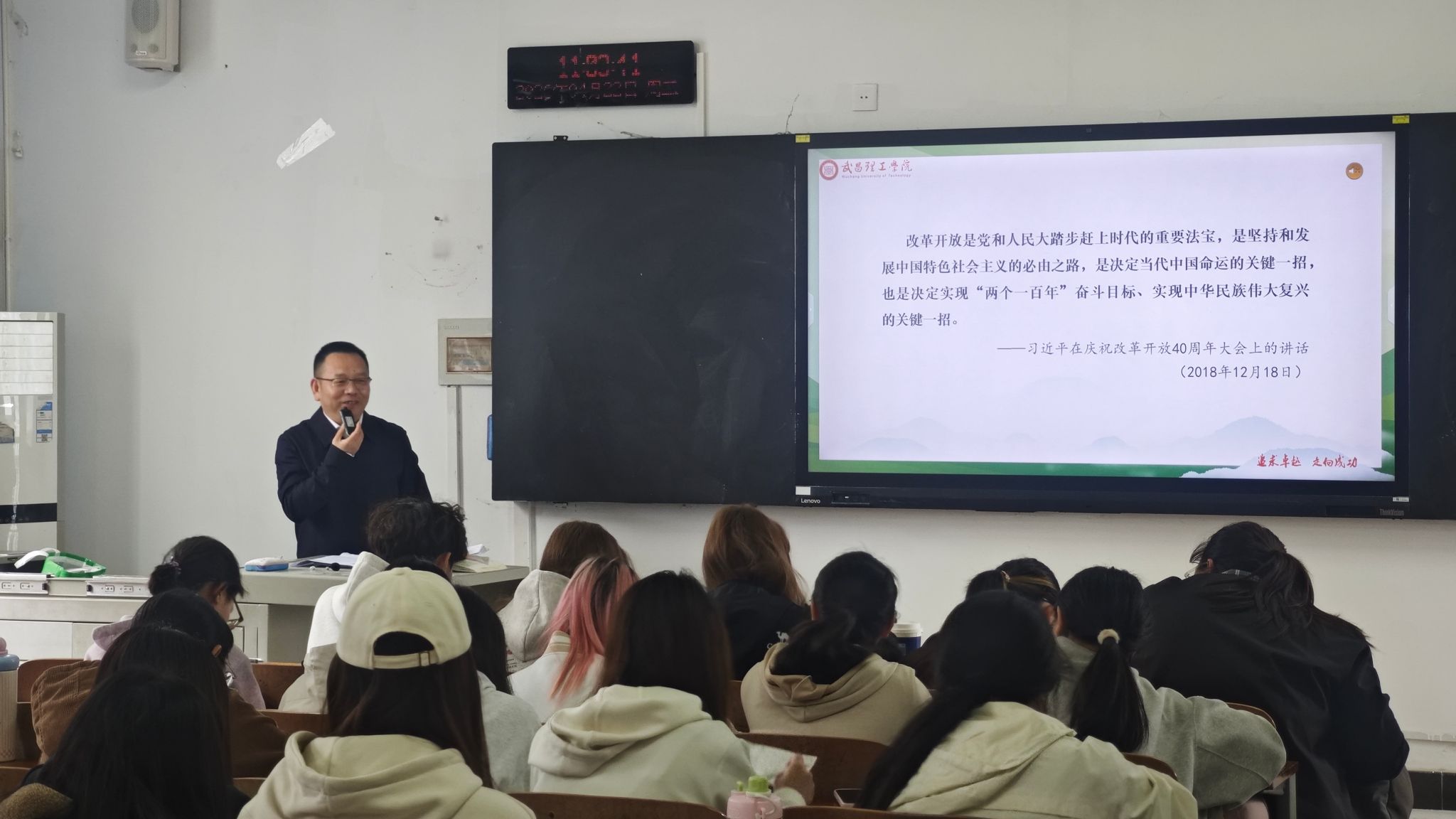 课堂上,程雪老师以“让改革创新成为青春远航的动力”为主线,系统讲授了改革开放的时代内涵、改革创新作为发展进步的活力之源的重要意义以及青年如何争做改革创新的生力军。她将国家创新驱动发展战略、新时代科技自立自强要求,与大国重器、校园创新案例、青年创新实践紧密结合,课堂逻辑清晰、互动热烈,用鲜活内容点燃了学生的创新热情与爱国情怀。