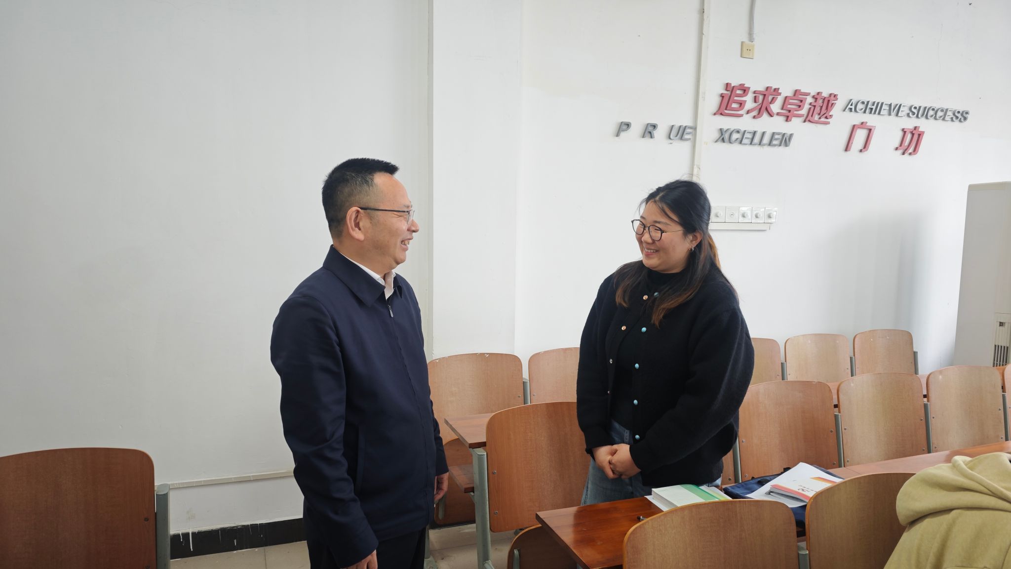 课后,高建勋书记与程雪老师进行了深入交流。他对程雪老师严谨细致的教学设计、扎实的专业功底、生动鲜活的课堂呈现给予充分肯定,认为课程紧扣时代主题、贴合青年特点,有效提升了思政课的吸引力与实效性。同时,他围绕强化理论与实践结合、融入学校成功素质教育特色、丰富教学案例与互动形式等方面提出具体指导意见,助力思政课提质增效,打造铸魂育人“金课”。