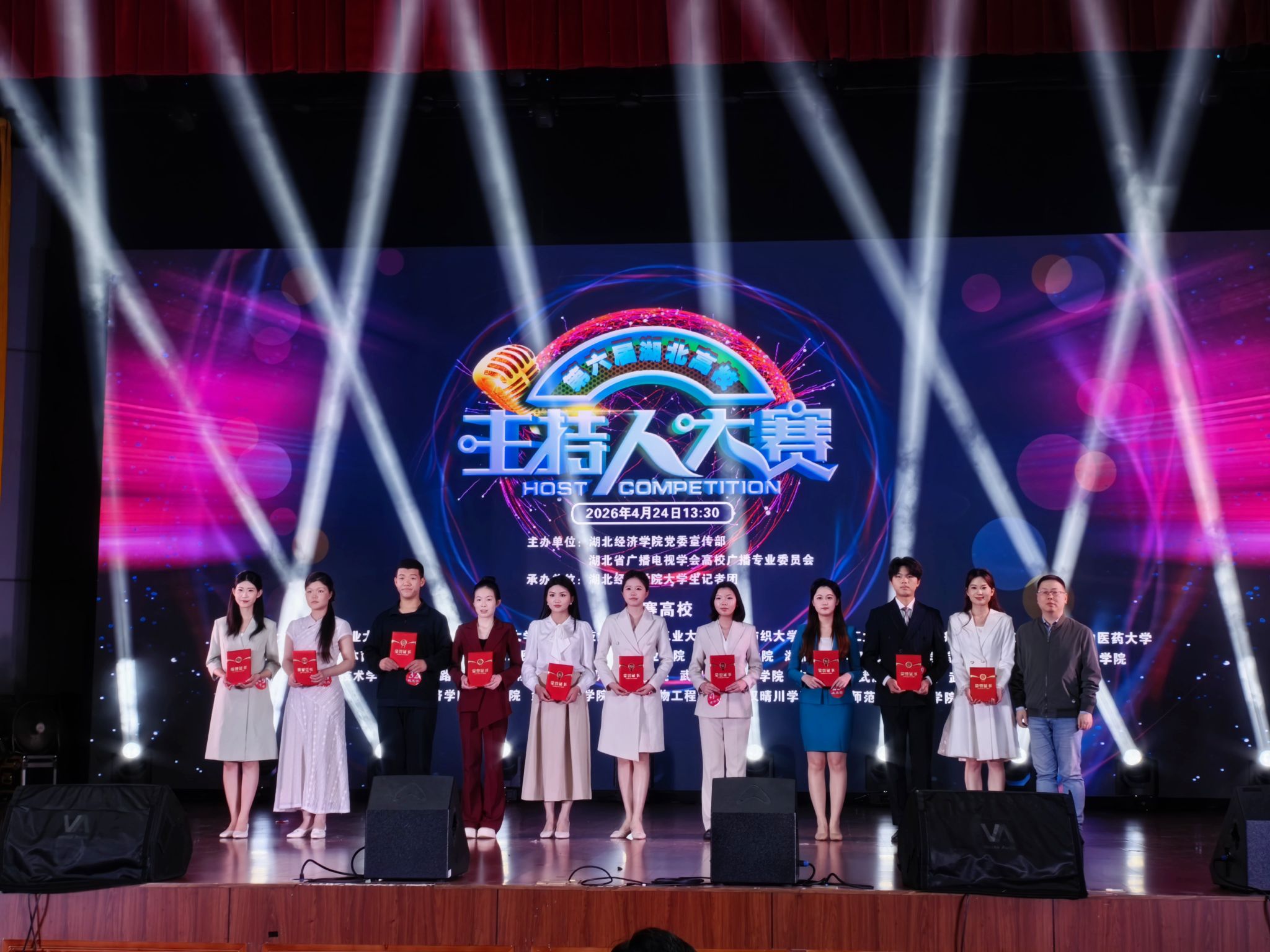 本次赛事由湖北高校广播专业委员会与湖北经济学院联合主办,来自华中科技大学、华中师范大学、武昌理工学院等全省30余所高校的优秀选手同台竞技,共逐校园“金话筒”。为备战此次大赛,学校党委宣传部联合影视传媒学院举办该赛事校赛,广泛动员大一学生参与,吴鑫坤凭借扎实的综合素养,成功脱颖而出,代表学校跻身决赛舞台。决赛分为两轮,第一轮为模拟主持,选手依次完成展示,综合成绩前 16 名晋级。第二轮为看图即兴主持,考验选手临场应变与语言表达能力。最终结合两轮综合得分,评选出一、二、三等奖。