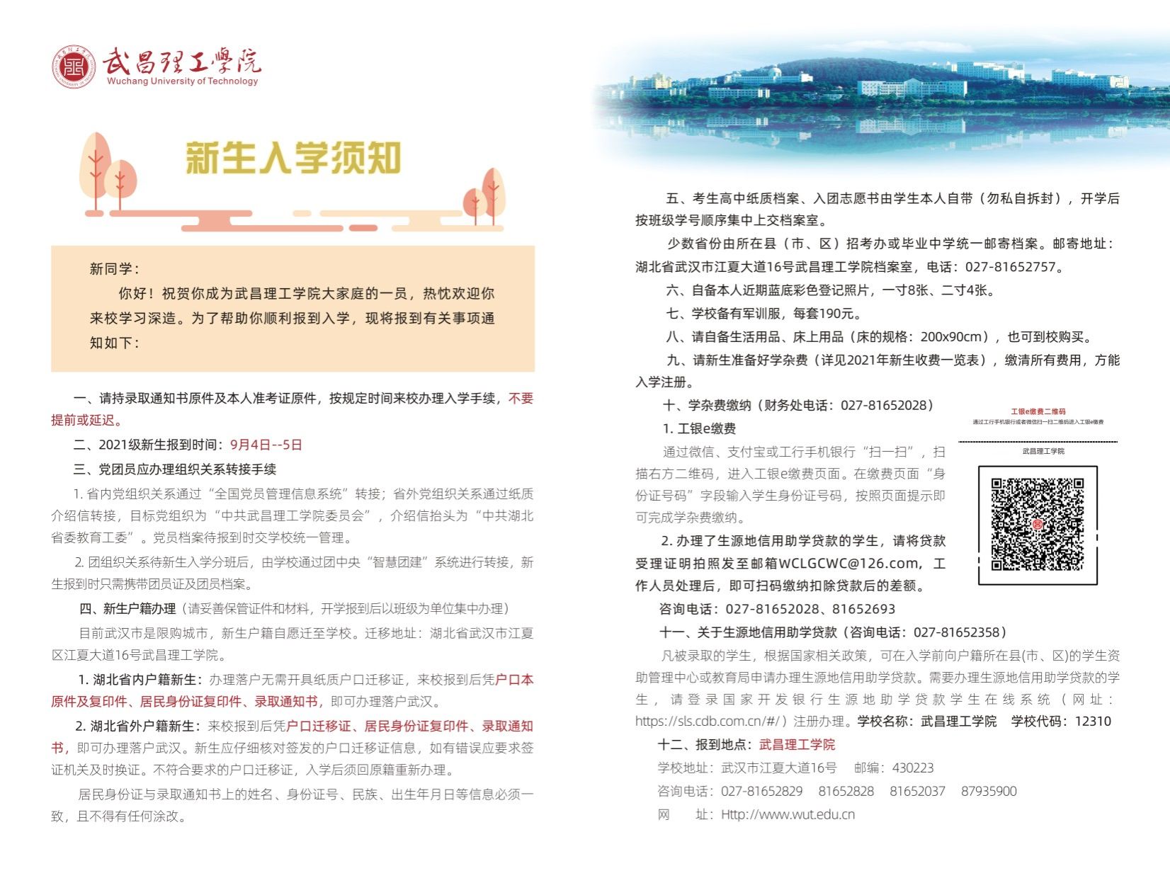 武昌理工学院2021年新生入学须知