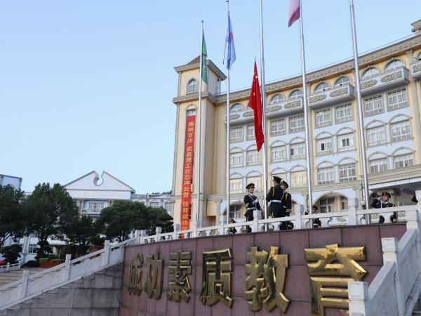 中南在线10月1日消息(大通社见习记者 王丽娜 李灵 报道)为庆祝中华人民共和国成立70周年,讴歌伟大祖国所取得的辉煌成就,引导广大学生共抒爱国情怀,大力唱响礼赞新中国、奋斗新时代的青春主旋律,10月1日早晨,武昌理工学院在行政楼前举行升旗仪式,全校数百名师生代表参加升旗仪式 。