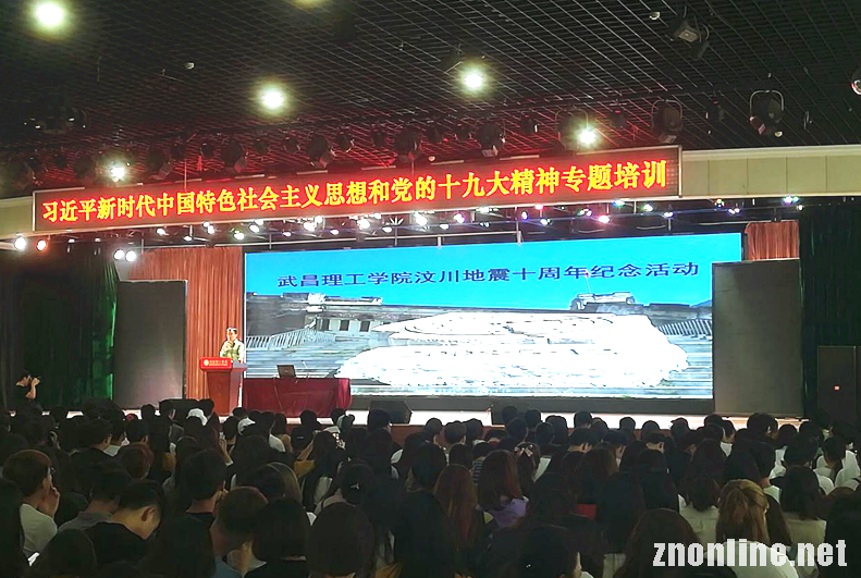 中南在线5月12日消息(大通社记者 徐慧群 记者 鲁信 报道)“时间飞逝,汶川大地震过去十年了,愿我们遇难的同胞安息。让我们一起为那些在地震中遇难的同胞默哀三分钟!”5月12日上午,在武昌理工学院大学生活动中心,该校党委副书记王海涛副书记为参加校党课的全校入党积极分子培训班、发展对象培训班和预备党员培训班近千名学员作“习近平新时代中国特色社会主义思想和党的十九大精神专题培训”,在会前他与全体学员共同为汶川地震遇难同胞默哀三分钟。