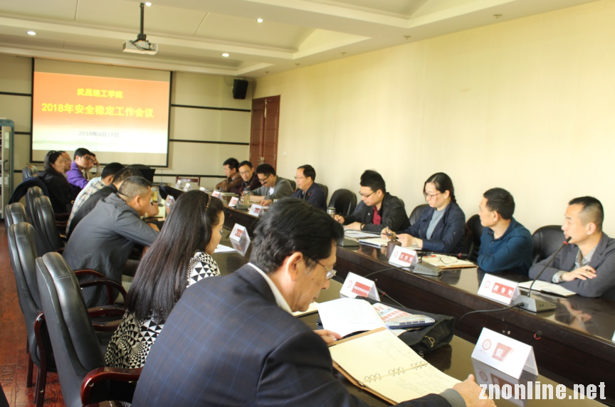 中南在线4月20日消息 4月18日上午,武昌理工学院在行政楼六楼会议室召开了安全稳定工作会议,校领导涂方剑、刘铭华、王海涛、林娟,各学院党总支常务副书记和宣传处、保卫处、学工处、后勤中心、教务处、人事处、督导室、教师发展中心、国际教育学院负责人参加了会议,会议由党委书记涂方剑同志主持。
