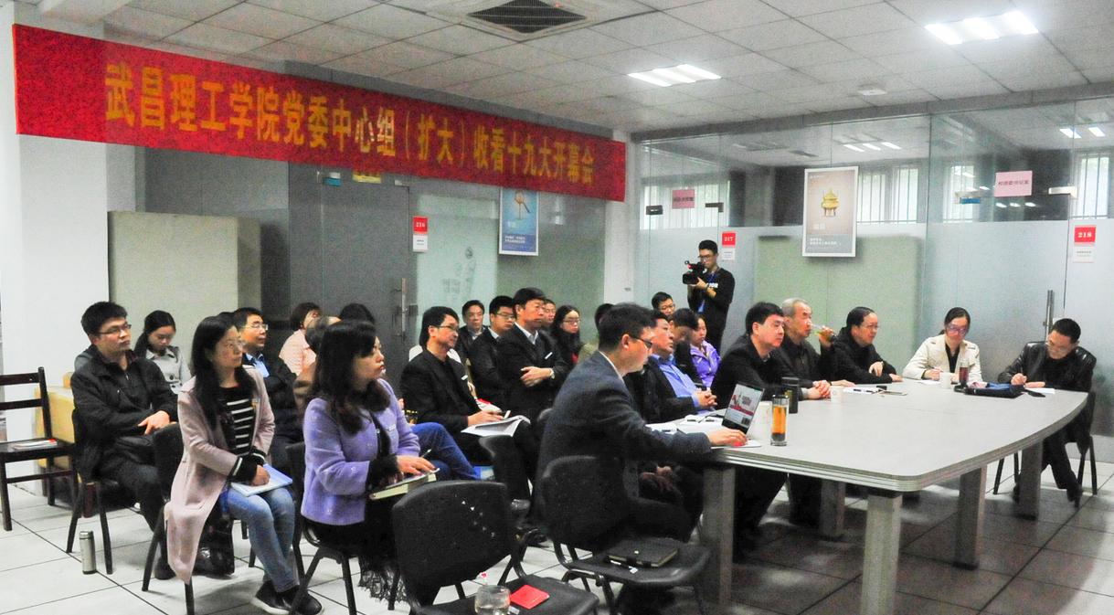 在该校文法与外语学院二楼会议室,该校党委中心组(扩大)集中收看党的十九大开幕会,校党委书记涂方剑同志等带头参加。会场气氛热烈,大家纷纷表示,听了习近平总书记的报告,鼓舞人心,备感振奋,下一步将学习好、贯彻好党的十九大精神,为学校建设全国一流民办高校而努力。