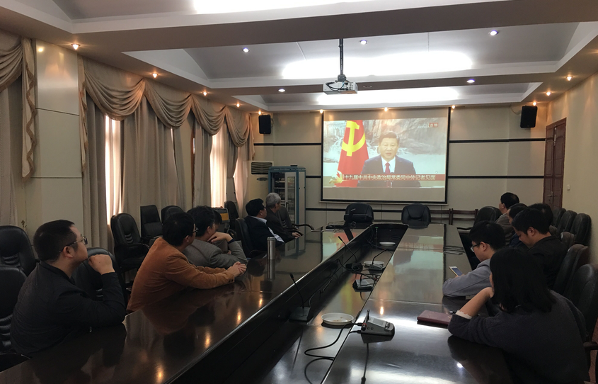 中南在线10月25日消息 10月25日中午12点左右,党的十九届中央委员会第一次全体会议新选出的中央政治局常委,同采访十九大的中外记者见面。武昌理工学院党委中心组、各学院党总支、直属党支部组织干部师生党员观看直播,干部师生纷纷表示坚决拥护新一届中央领导集体。