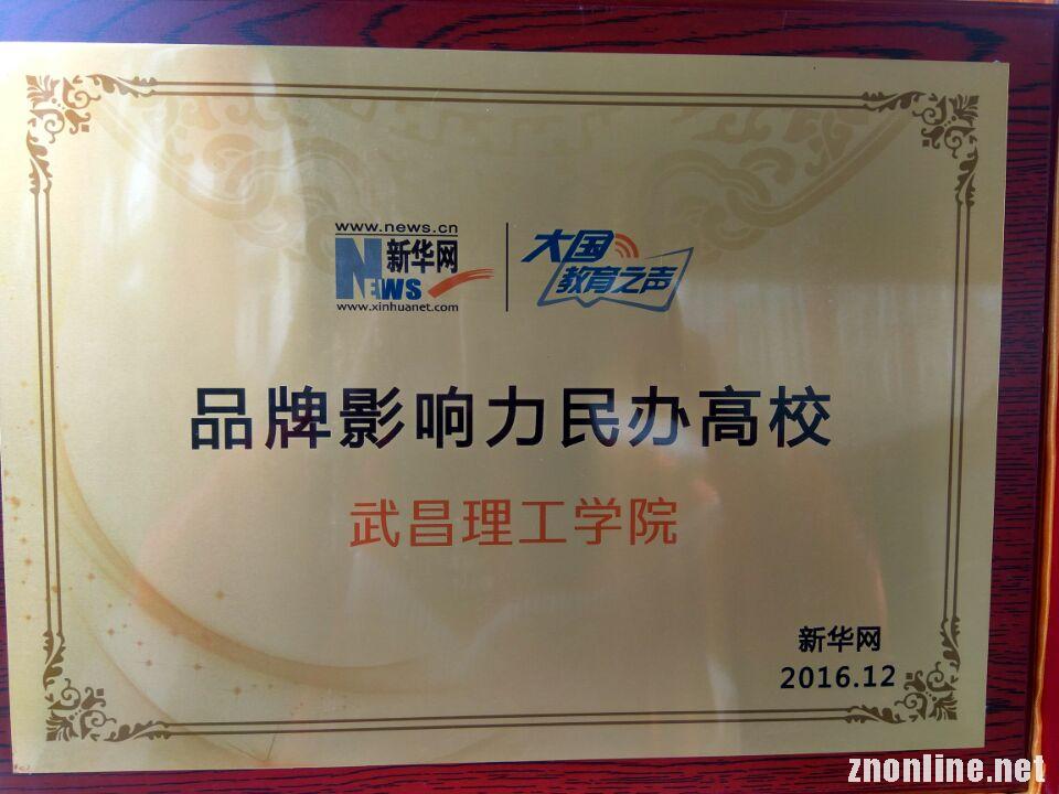 在2016新华教育论坛之大国教育之声活动上,公布了2016中国教育功勋人物、2016中国品牌影响力民办高校等系列奖项。经过网民投票、专家评审等环节,武昌理工学院从400余所民办高校中脱颖而出,成功获评为“2016中国品牌影响力民办高校”,并且全国排名第二,全国仅10余所高校获此殊荣。