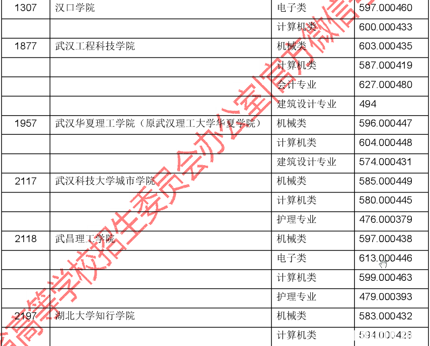 在公布的湖北省2016年普通高校招生技能高考本科录取院校平行志愿投档线中,武昌理工学院投档线分别为:机械类597分,电子类613分,计算机类599分,护理专业479分。各专业类投档线均超过最低投档线数十分,其中电子类投档线更是位居全省同类高校第二位。