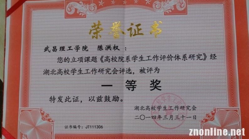 中南在线4月23日消息(通讯员 蔡瑄璟 记者 鲁信 报道)近日,湖北省高校学生工作研究会公布了最新获奖课题名单,武昌理工学院商学院陈洪权老师的立项课题《高校院系学生工作评价体系研究》被评为一等奖,并获得省级研究课题专项资助,被列为重点课题。
