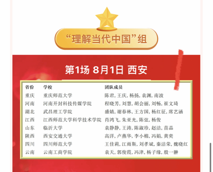 据悉,外研社“教学之星”大赛创办于2013年,是面向全国高校外语教师的大型公益赛事。大赛以引领教学发展、创新教学理念、交流教学方法为宗旨,以专业水准、规范流程、科学评价为原则,以多语种、多层次、多模式为特色,在全国高校外语教育领域广受认可。2023年外研社“教学之星”大赛主题为“外语教材的有效使用:数字赋能,创新育人”。本科英语组分为大学英语组、英语类专业组和“理解当代中国”组。文法学院英语专业参赛团队精心打磨的参赛作品《英语演讲——文化自信》 选择的是“理解当代中国”组这一赛道。