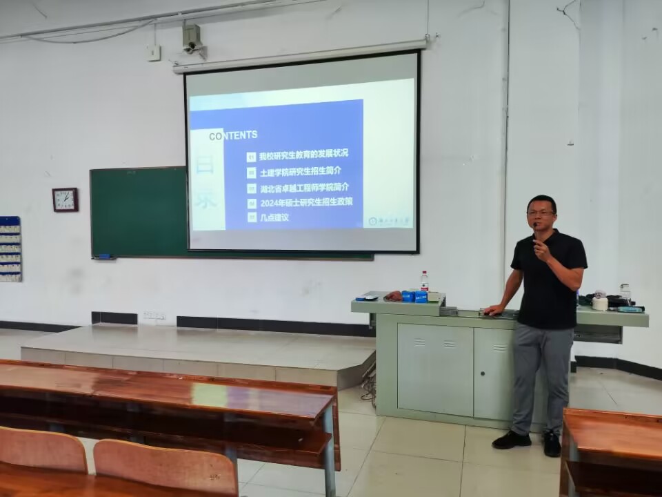 考研宣讲活动上,来自湖北工业大学土木建筑与环境学院的老师为同学们介绍了当前大学生就业的困难性,并为同学们讲述了近年来考研的大体情况,如考研成功人数,当前考研上岸率等情况,并通过分析考研成功后的一系列优势,为同学们描绘考研成功后的辉煌蓝图。