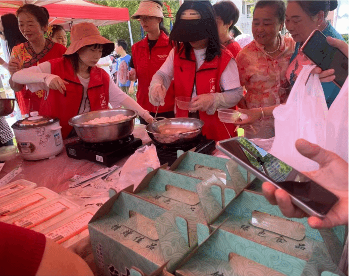 此外,设置了风筝IY、香包制作、剪纸等非遗手工体验区,参与者们有机会亲自动手体验多种手工艺项目,深入感受传统文化的独特魅力。同时进行江夏汤逊湖鱼丸文化宣传,向参与者介绍鱼丸的渊源、发展及其在江夏地区的重要地位。