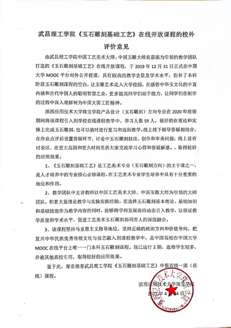 《玉石雕刻基础工艺》课程旨在让玉雕艺术走入大学校园,提高学生动手能力,培养学生工匠精神,传承我国玉石文化。