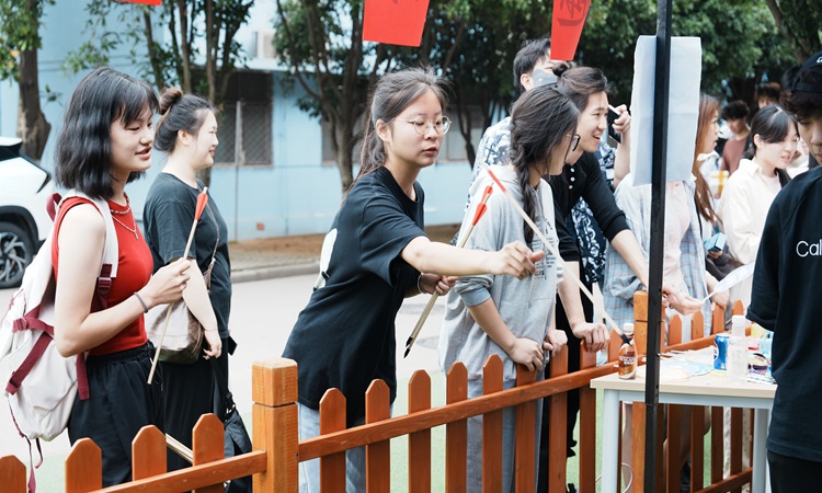 除了DIY画石膏游戏,现场还设有趣味投壶、可乐篮球和五子棋等游戏项目。这些游戏考验了参与者的技巧和策略,同时也让大家体验到了社区文化的魅力。同学们在参与过程中锻炼了手眼协调能力,培养了艺术审美和动手能力。