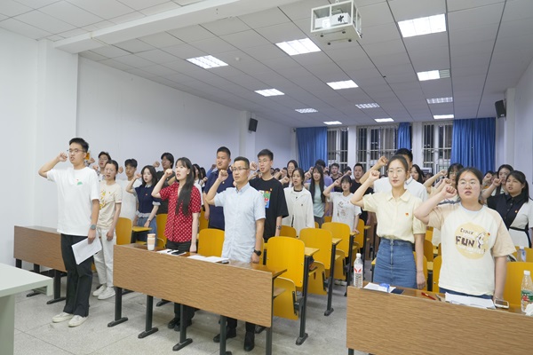 南书记发言结束,全体同志起立,奏唱《国际歌》。大会最后,在支部副书记周明瑶同志的带领下,与会同志重温入党誓词。全体同志面向党旗,举起右手,庄严肃立。誓词虽短,字字千钧,增强了党员同志的使命感,坚定了党员为共产主义事业奋斗终身的信念。