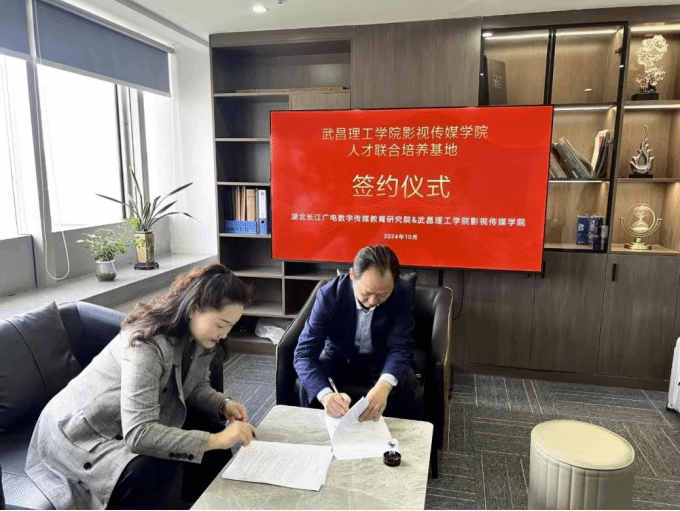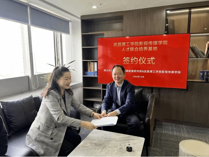 中南在线11月8日消息 (通讯员 汪荣芬 报道 陆登羽 龙婷 蔡欣成 摄影)为深入贯彻影视传媒学院关于访企拓岗促就业专项行动的工作部署,深化产教融合,优化人才培养模式,拓宽学生就业渠道,促进毕业生更充分、更高质量的就业,2024年10月24日,影视传媒学院党支部书记李曼、影视摄影与制作专业系主任王春亮、实验中心主任王超一同前往湖北长江广电数字传媒教育研究院进行人才联合培养基地签约仪式。