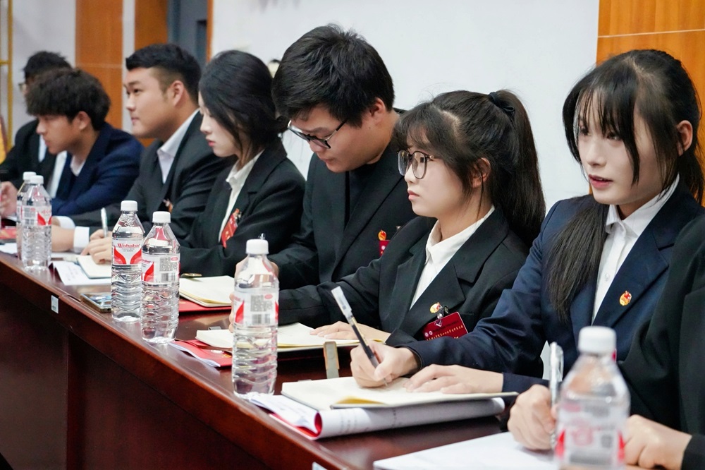 座谈会在热烈氛围中展开,学生代表们围绕校园文化建设、学生组织建设、创新创业能力培养等议题积极讨论,剖析学习、生活中的问题并提出宝贵建议,展现出强烈的责任担当与青春活力。汪继平教授在座谈会上对学生代表们的积极态度和建设性意见给予了高度评价,并引用了电影《一个都不能少》来强调教育的公平性:“正如《一个都不能少》这部电影所展现的,每个学生都应当被珍视,大家的声音都应被听见。你们的建议正是我们改进的方向,学校将认真对待并落实每一条建议,确保教育的公平与质量,为学生营造更好的环境。”