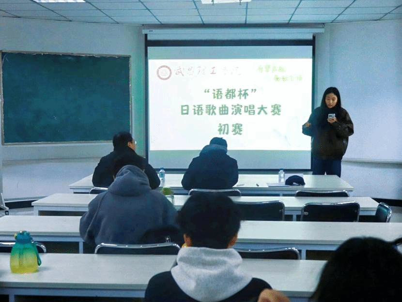 中南在线11月29日消息(大通社见习记者 黄文欣 尚舒琴 报道 摄影摄像中心记者 江宇轩 李晨曦 摄影)为了激发学生对日语学习的兴趣,促进中日文化交流,为爱好日语歌曲的同学提供展示才华的平台的目的,武昌理工学院国际合作与交流处和校团委主办、语都二外公司冠名赞助的“语都杯”日语歌曲演唱比赛活动初赛在11月25日于国际教育学院多媒体教室热烈举行。
