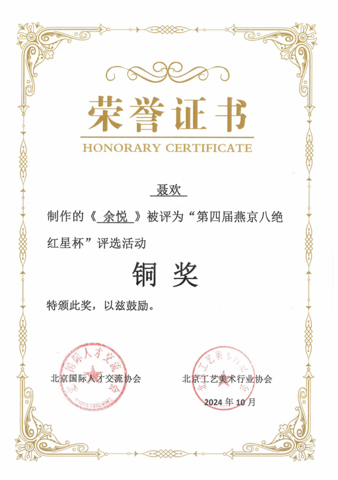 获奖学生聂欢在接受采访时表示:“能够获得铜奖,我感到非常荣幸。这不仅是对我个人努力的认可,更是对工艺美术系全体师生的鼓励。我将以此为契机,继续深入学习传统工艺,努力成为一名真正的工匠。”(完)