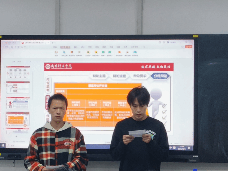 据悉,此次辩论赛设有三个辩题,分别为“取得成功是否需要具备敬业拼搏的素质”、“敬业精神是否比工作能力更重要”以及“推崇‘996’是否是敬业者的追求”。三个辩题均聚焦职场,敬业的相关内容。记者特别采访到武昌理工学院文法学院汉语言2304班,比赛开始前,主持人张贵,熊佳兴简单介绍了比赛的规则。比赛严格遵循开篇立论、驳论、攻辩、攻辩小结、自由辩论、总结、评委点评,打分等既定流程,各环节紧密相连,构建起完整流畅的赛事体系。随后,辩论赛正式开始。