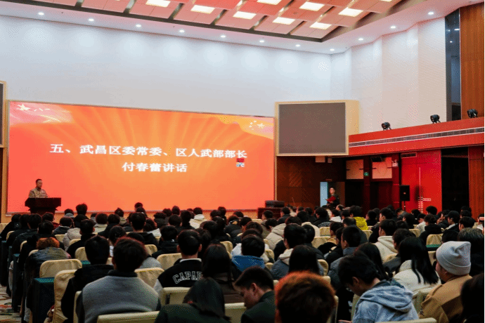 中南在线12月10日消息(大通社记者 袁婷 闵璐 报道 摄影摄像中心 何硕 邱文清 李嘉域 杨诚 摄影)“国无防不立,民无兵不安”12月9日下午,武昌理工学院于图书馆六楼召开2025年春季大学生应征入伍政策宣讲会,校长助理、学生工作处处长李金永,武昌区委常委、区人武部部长付春蕾,武昌区人武部军事科鲁森浩科长,武昌区人武部政工科闫晗科长,学生工作处处长副处长常双双,以及各学院党总支书记,征兵工作负责老师,预备连成员及意向参兵学生参加会议。