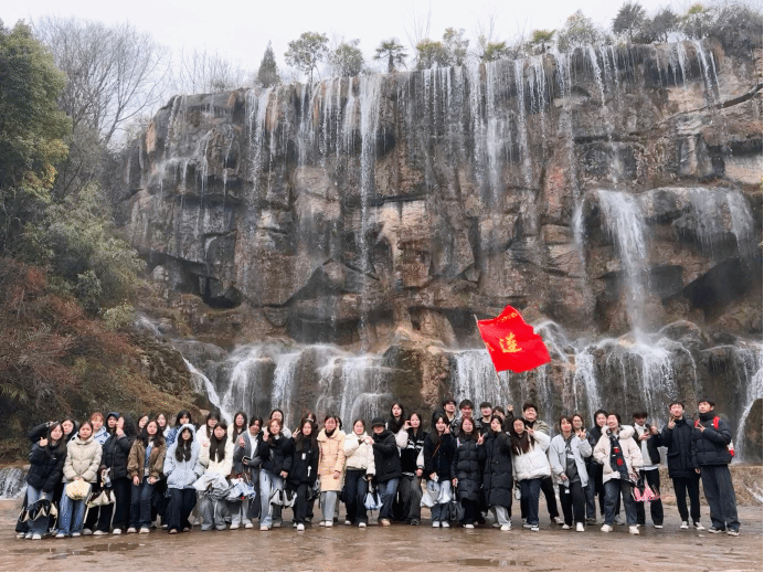 龙吟瀑在雨中发出低沉磅礴之声,学生们沿着崎岖小路靠近瀑布,感受大自然的震撼力量,也了解了瀑布名称背后的传说,对当地文化底蕴有了更深认识。此外还有佳人瀑、千工坝等景观,尽管道路泥泞,大家相互扶持,无人喊累。