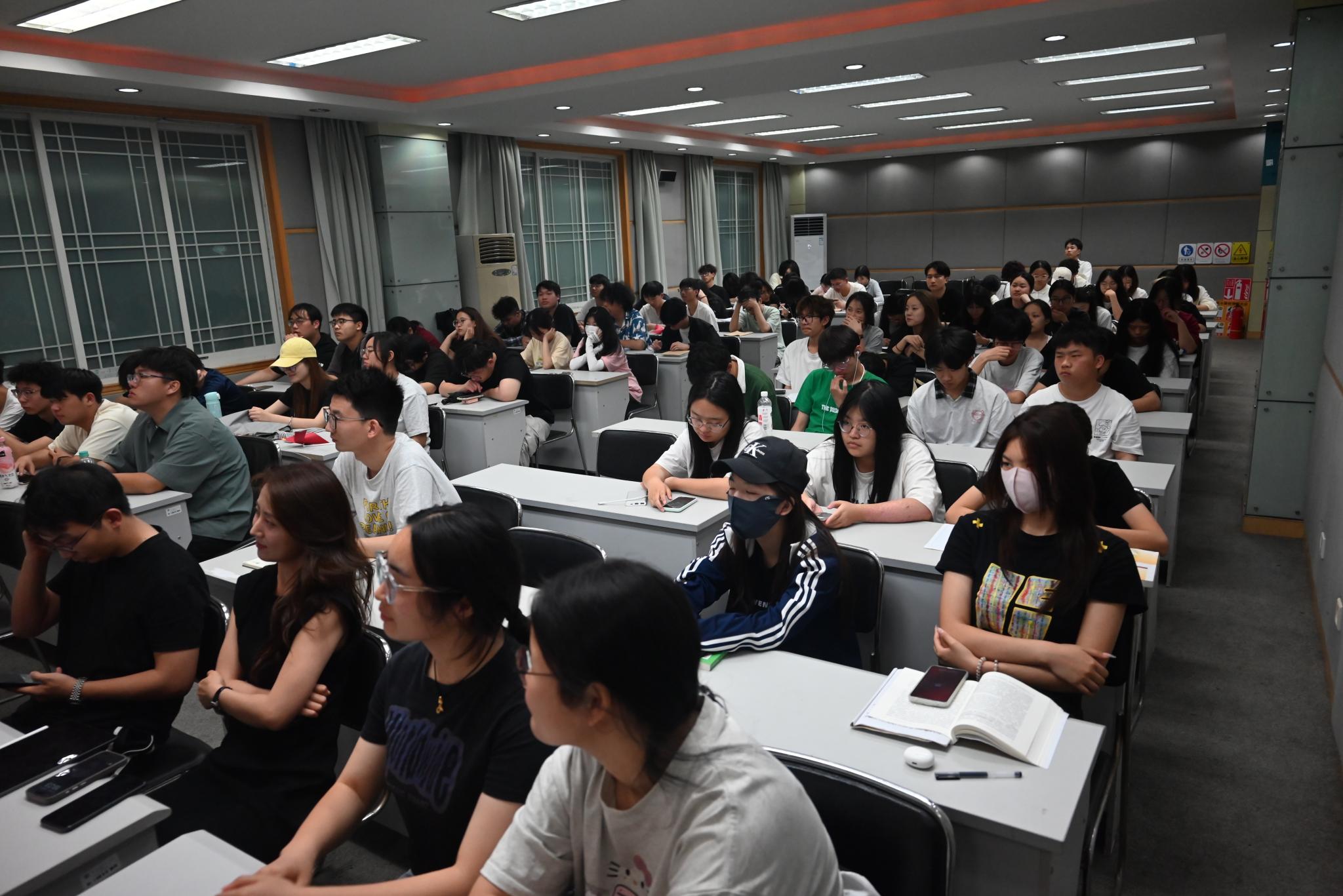 中南在线5月15日消息(大通社记者 余俊杰 通讯员 赵翔 报道 摄影摄像中心记者 耿茂程 明骏飞 摄影)为深化商学院专创融合工作室建设,推动创新创业教育与实践有机联动,5月14日晚,武昌理工学院商学院在809教室举办“文化基因解码与商业价值重构”专题讲座。本次活动特邀“雷军腾飞奖学金”获得者、武汉未至之境文旅创始人、武汉大学历史学硕士在读生张瑞年担任主讲,商学院优秀校友容欢龙及师生代表百余人参与。