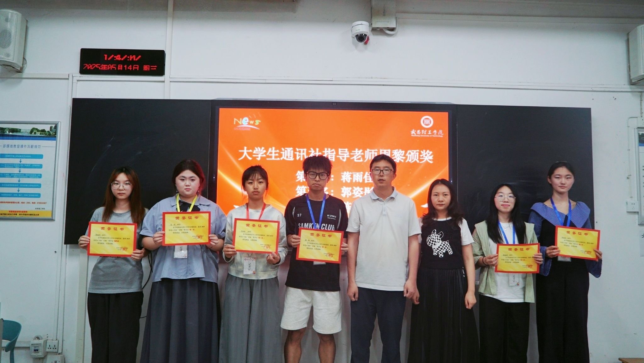 中南在线5月16日消息(大通社记者 陈亦菲 报道 摄影摄像中心记者 陈星雨 周冰芳 摄影)为奖励在新闻写作方面表现突出的优秀学生干部,武昌理工学院大学生通讯社于5月14日在实验教学中心108教室举办2025年4月“星原”奖学金颁奖仪式,校党委宣传部部长刘明杨老师、大学生通讯社指导老师周黎老师及大通社全体记者共同参与。