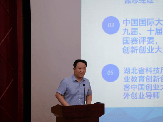 叶凯老师还详细说明申报对象与条件、评审程序和扶持方式等关键信息,并提醒学生们注意申报过程中的注意事项。他特别强调了商业计划书的重要性,指出:“商业计划书是评审的重要环节,它不仅展示了你的创业想法,更是你创业决心和能力的具体体现。”通过具体数据和案例,叶凯老师展示政策对大学生创业的积极影响,分享湖北省大学生创业扶持项目的具体实施情况和取得的成效,鼓励在场学生积极申报,抓住机遇。