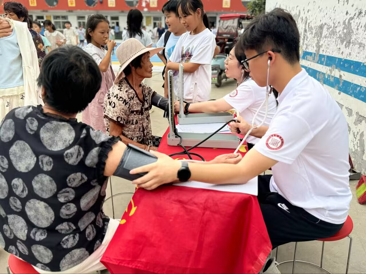 短短26天,服务队足迹覆盖南坞镇多个村落,累计开展主题课程 12 场,为乡村老人提供血压测量等基础健康服务,惠及村民及学生约 500 人次。
