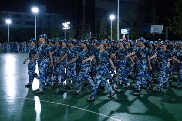 晚上七点,训练场上已响起铿锵有力的口令声。在各连队教官的指挥下,同学们有序展开军姿、队列等基础训练。学生们迷彩着装整齐、精神饱满,在反复练习中掌握动作规范。“抬头挺胸,目光坚定!”教官穿梭于队列中,逐一检查并耐心纠正动作。尽管汗水仍浸湿了衣衫,但所有参训学生始终坚持完成训练任务,展现出顽强拼搏的青春风貌。