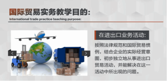 《国际贸易实务》课程秉持“教育即服务产业”的理念,通过对外贸实习基地企业的咨询、调查与研讨,明确了从事进出口业务人员必须具有的核心能力,并据此确定了国际贸易实务课程的能力培养目标。课程教学内容按照外贸业务流程展开,通过仿真操作、案例分析、情景模拟、企业实习等活动项目组织教学,强化学生实践操作能力,做到课程要求符合专业要求。