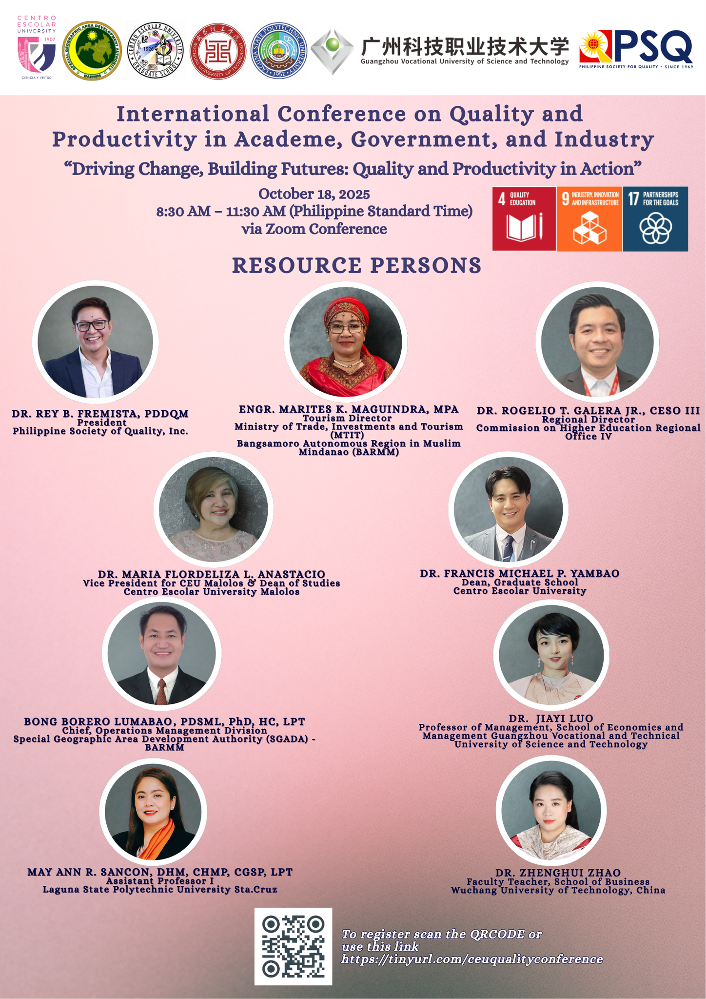 此次国际研讨会的成功举办,不仅展⽰了武昌理⼯学院教师在国际学术舞台的专业影响⼒,更为学校与东南亚⾼校建⽴⻓期学术合作搭建了重要平台。BARMM Ministries(巴马穆省政府部)、SGADA(苏加奥省发展管理局)、Laguna State Polytechnic University(拉古纳州应用技术大学)等机构代表的积极参与,进⼀步丰富了学术交流的多元视⻆。作为 CEU(中央大学)博⼠后项⽬毕业班成员,赵政慧博⼠将持续推动中菲两国在质量⼯程领域的产学研合作。