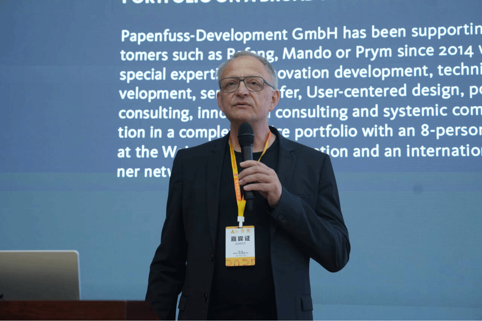 德国Atelier Papenfuss设计公司创始人、德国包豪斯大学及德国哈勒大学设计学院客座教授Andreas Papenfuss(安德亚斯·帕彭福斯)率先开讲。在程文婷副教授的德文翻译支持下,Andreas Papenfuss聚焦“不同年龄段儿童的生理特征与心理需求差异”,分享了与欧洲多家知名文具品牌的合作案例,通过动态案例拆解的方式,系统展示了团队为不同阶段群体打造的文具设计成果——从贴合低龄儿童抓握习惯、采用安全环保材质的卡通造型画笔,到适配青少年学习场景、注重简约美学与高效收纳的文具套装,每一系列设计均紧扣“以用户为中心”的核心逻辑,为在场师生提供了“如何将用户需求洞察转化为设计成果”的全新思路,为国内设计教育与美育实践的融合提供了极具价值的国际参照。