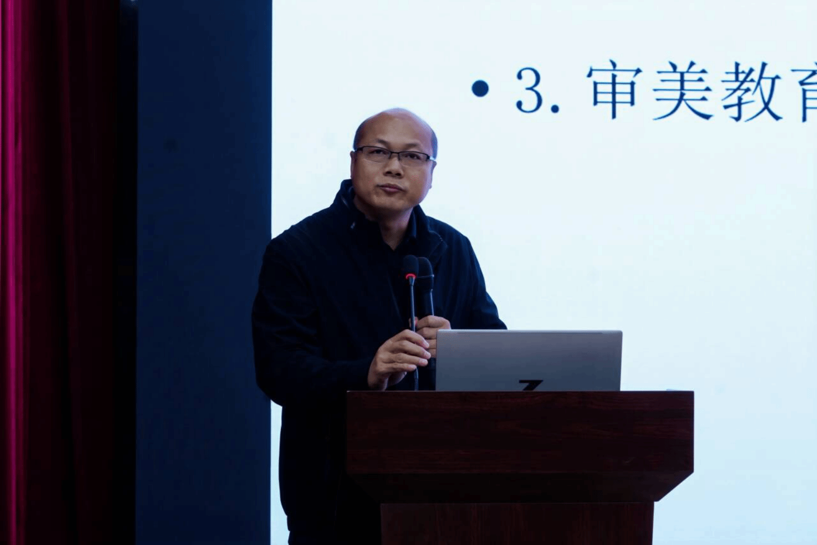 武汉理工大学艺术设计学院教授、博导喻仲文压轴分享。演讲中,喻仲文教授直指审美教育的本质内核,在此基础上,他聚焦“触屏如何成为一个审美教育问题”展开了深入剖析。他指出,屏幕作为数字时代的核心媒介,具有桥梁与隔阂的双重哲学属性。一方面,屏幕打破了物理空间的限制,让全球多元文化与艺术成果得以即时呈现;另一方面,它也造成了“感知的异化”,这种“中介化感知”使得审美教育面临“真实体验缺失”的深层挑战。