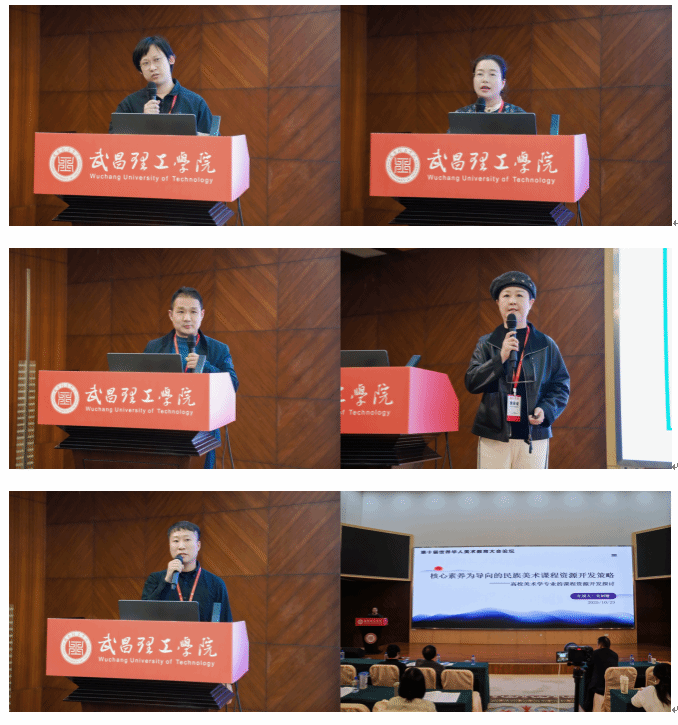 此外,高等美术教育改革路径论坛在武昌理工学院图书馆六楼报告厅同步召开,由武昌理工学院创意设计学院闫萍教授主持,海内外学界专家齐聚一堂,共探高等美育改革新路径。南京工程学院艺术与设计学院院长杨成立教授,针对新文科背景下工科院校美育课程群建设的现实困境,提出切实可行的突破路径;东北师范大学博士生导师王默以“美术+语文”为具体案例,探索基于CDIO模型的跨学科课程构建模式;齐鲁师范学院刘芳副教授聚焦数字化赋能,深入分析高校美术教育传承与创新的有效策略;武汉工程大学李君华教授、山东科技大学人文与艺术中心主任陈绘兵,分别从AI驱动下艺术设计人才培养数智化转型、美术教师角色从“知识传授者”到“创意引导者”的重构两大维度展开论述,深刻洞察技术变革对高等美育的深远影响。