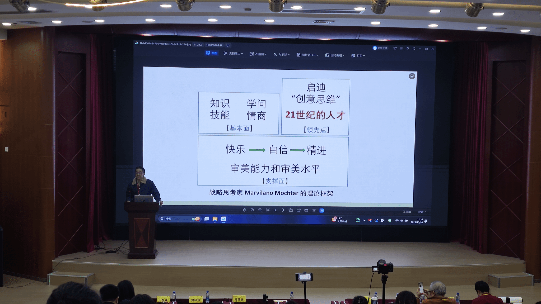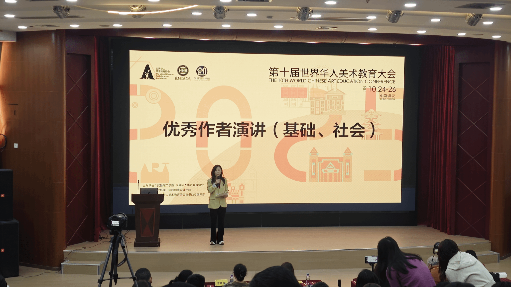 武汉本地的王栋丹老师(武汉市东湖中学)的发言《以美育培养文化认同的高中美术教学实践探究》,则从文化根基的角度回应了大会主题。她结合教学实践,阐述了如何通过美术教育深化学生对于中华优秀传统文化的理解与认同,强调了美育在塑造青少年文化自信与家国情怀中的关键作用,为美术教育注入了深厚的文化内涵。