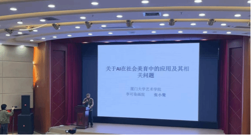 厦门大学艺术学院张小鹭教授则以《关于AI在社会美育中的应用及其相关问题》为题,系统解构了AI在社会美育中的五大应用维度,每一个维度都伴随着极具说服力的国际案例,为在场师生带来了一场穿梭于技术革新与美育本质之间的深度思辨,也为华人美术教育在智能时代的破局与进阶提供了前沿思考。