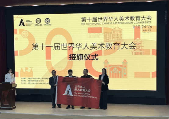 在全场嘉宾的见证下,世界华人美术教育协会代表与武昌理工学院代表将大会会旗交予第十一届大会主办单位代表、陕西师范大学美术学院王晓燕教授。王晓燕教授随后介绍了第十一届大会的筹备思路与初步规划,并发出诚挚邀约,期待全球华人美术教育工作者届时齐聚陕西,共同开启美术教育的新探索,至此第十届世界华人美术教育大会正式落下帷幕。(完)