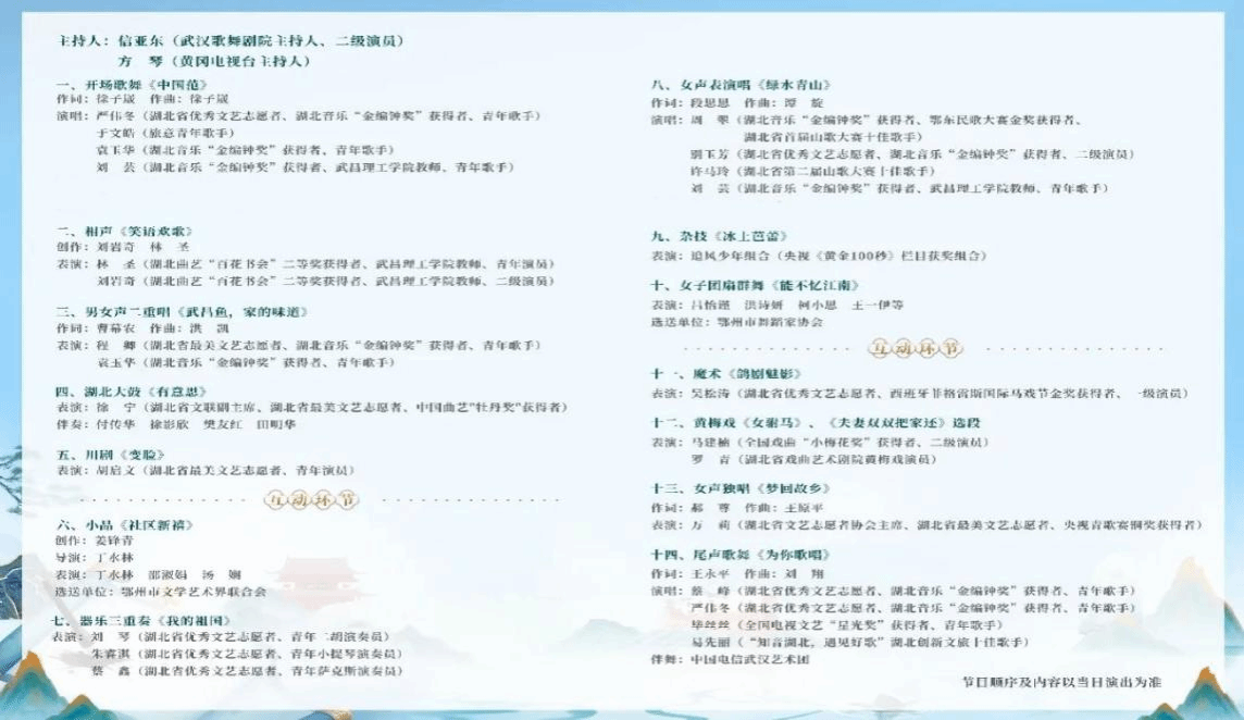 武昌理工学院刘芸老师及吴姗姗老师积极参与湖北省红色文艺轻骑兵系列演出活动,以精湛的艺术表现和深厚的专业素养,多次登上舞台,展现出武昌理工学院教师良好的精神风貌与责任担当。通过这些富有感染力的文艺演出,不仅弘扬了红色文化、传递了时代强音,更以实际行动践行了“立德树人、服务社会”的办学宗旨。
