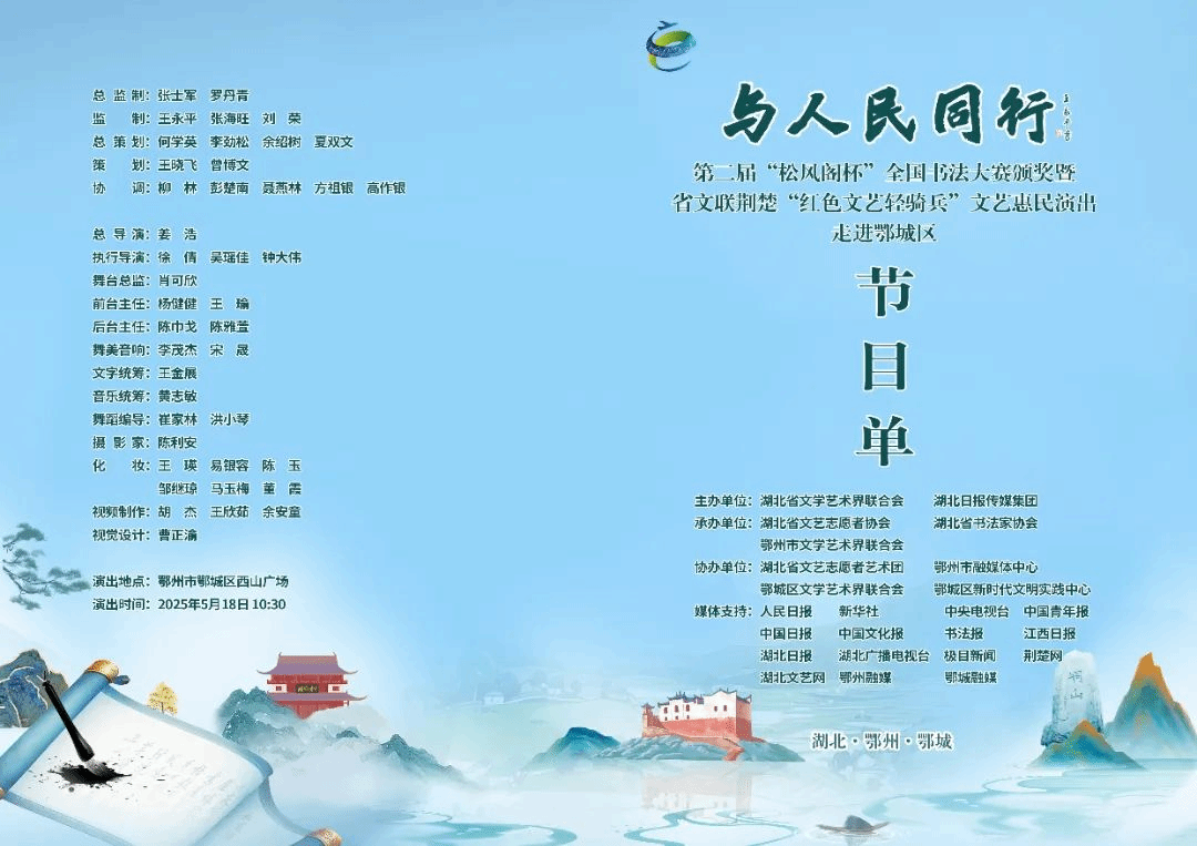 5月18日上午,“与人民同行”第二届“松风阁杯”全国书法大赛颁奖暨省文联荆楚“红色文艺轻骑兵”文艺惠民演出在鄂州市鄂城区西山广场开展。省文联党组书记、常务副主席张士军,省文联党组成员、副主席王永平等领导及现场千名观众共享这场文化盛宴。