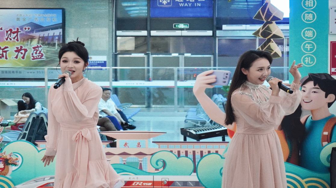 5月31日上午,“弘扬三大精神 奋力建成支点”湖北省文联荆楚“红色文艺轻骑兵”在全省各高铁站共同唱响!湖北省文学艺术界联合会与中国铁路武汉局集团有限公司党委宣传部(文联),通过曲艺、歌曲、舞蹈、魔术、戏剧等多种艺术形式弘扬大别山精神、抗洪精神、抗疫精神三大精神。武昌理工学院的刘芸老师和湖北歌手肖可欣在武昌火车站演唱了《绿水青山》,赢的掌声一片。