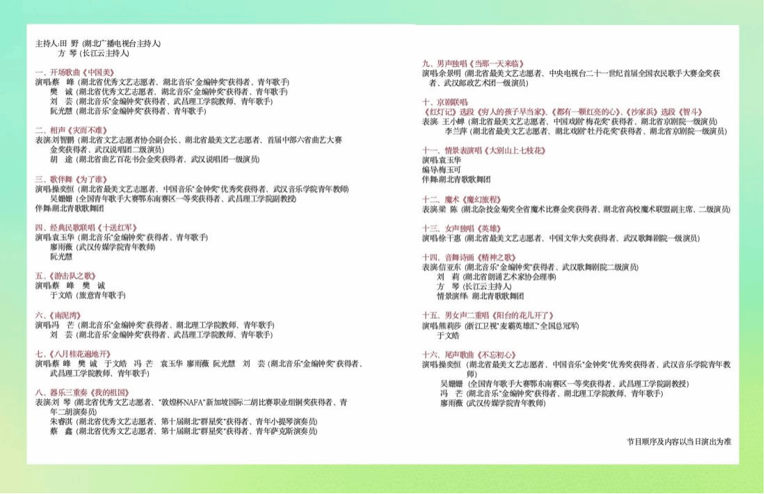 这一系列参演活动,充分体现了学校鼓励师生走进社会、服务基层的育人导向,生动诠释了艺术教育与思想政治教育相融合的实践路径。活动既拓宽了文化育人的平台,也增强了学校与社会之间的精神联结,进一步彰显了武昌理工学院在培养高素质应用型人才、推动地方文化发展方面的积极作为。(完)