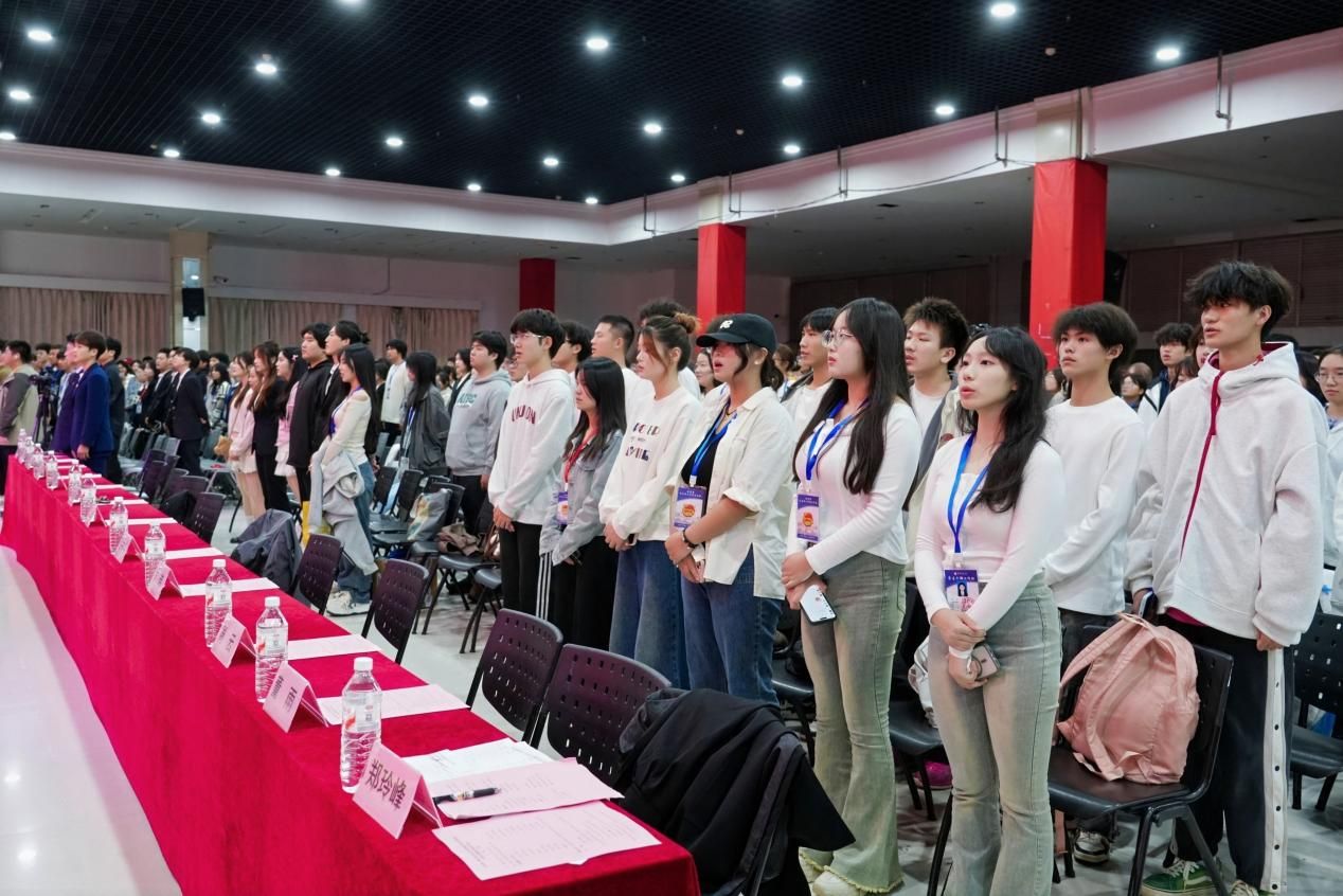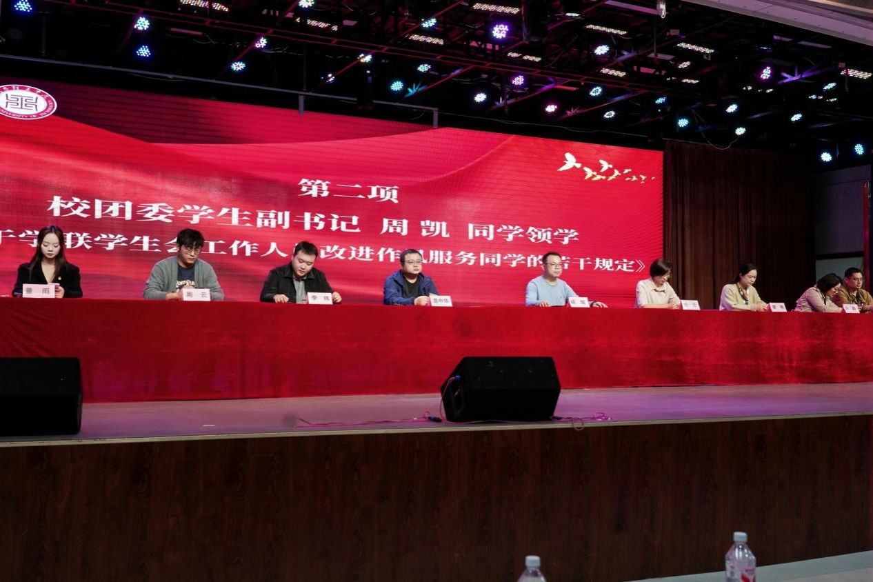 仪式在庄严的《团歌》旋律中拉开序幕,激昂的歌声回荡在会场,凝聚起青年学子的责任与担当。随后,校团委学生副书记周凯带领全体学生骨干共同学习《关于学联学生会工作人员改进作风服务同学的若干规定》,从思想引领、作风建设、服务宗旨等方面明确要求,引导学生骨干牢记初心使命,以务实作风服务广大同学。