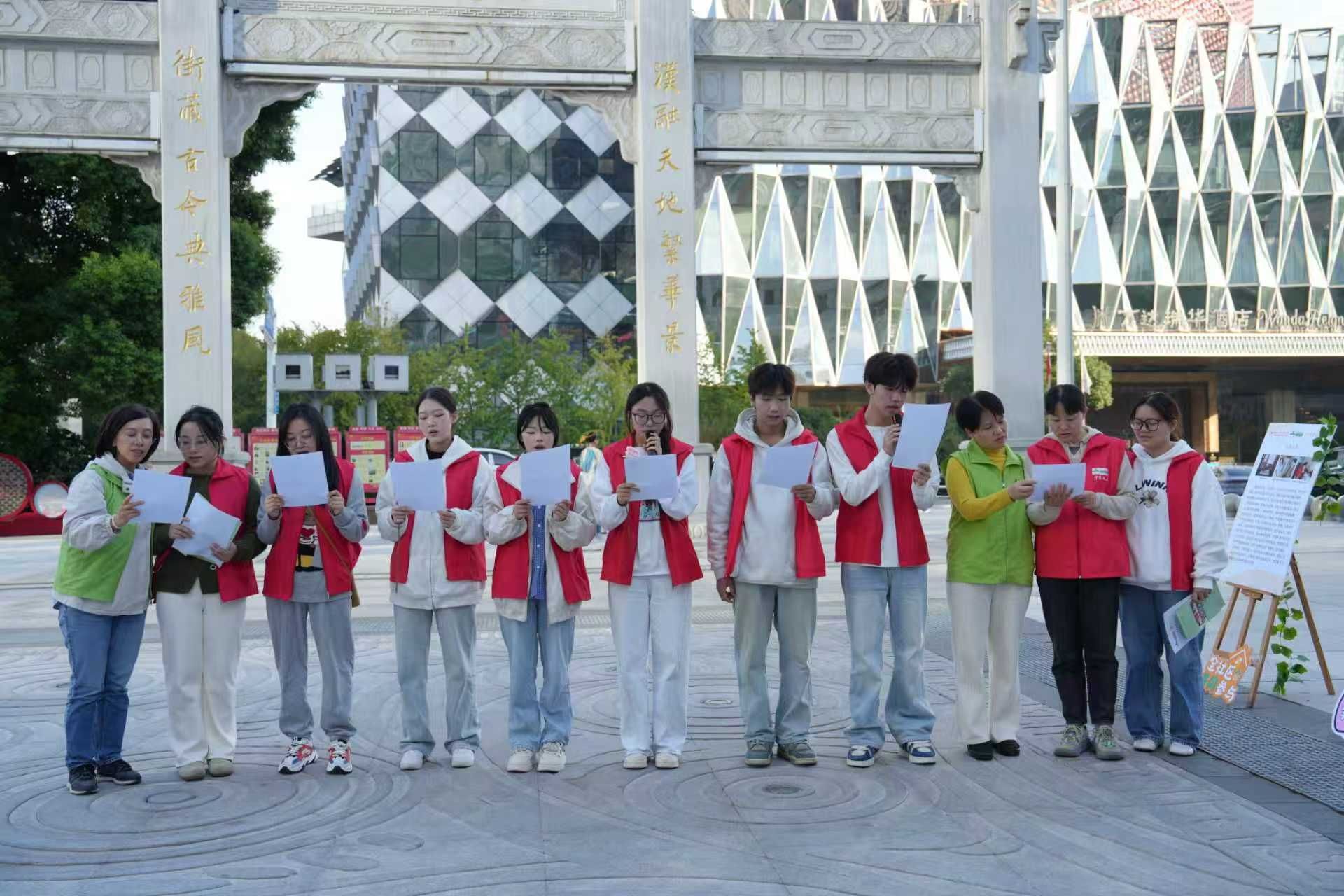 参与音乐快闪表演的10位义工同学来自武昌理工学院“红叶安宁疗护志愿服务队”和武汉大学“温心宁养义工队”,他们中有本科生、硕士生和博士生,有临床医学、护理学、文学等不同的学科背景,但都怀着相同的心愿,希望在活动中贡献自己的一份力量,让音乐抚慰患者和家属的心灵,向公众传递宁养大爱的讯息。为此,同学们利用课余时间反复排练,还认真学唱了宁养之歌《守护》。大家在深秋的阳光下齐声合唱宁养之歌《守护》。“人间有情,宁养有爱;实现承诺,全民享有”的口号声响亮坚定。随后社工和义工们手持宣传资料,沿着汉街继续徒步宣传,向沿途市民、商户介绍宁养服务。